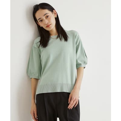 【接触冷感/体型カバー】袖タック6分袖ニット/洗濯機OK/UVケア