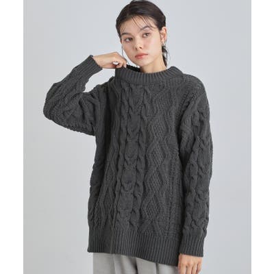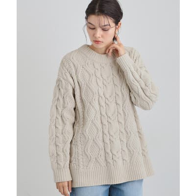 マットなモール糸で編み上げたざっくり編みのニットは、ケーブル柄がたっぷり入って存在感のあるディテールが魅力です。