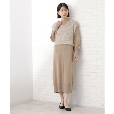 ハイネックニットワンピースと、トレンドのフェザー起毛ベストがセットになったお得なアイテムです。