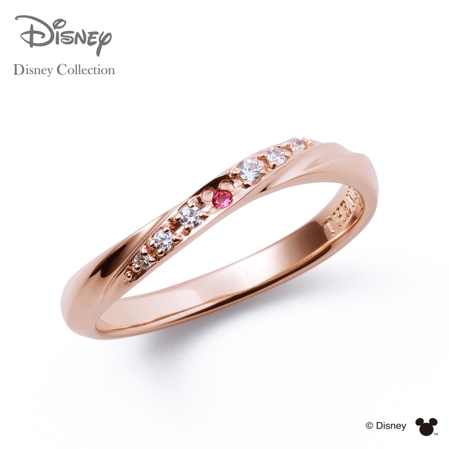 【ディズニーコレクション】肌になじむピンク、クールなブラックカラーのオールコーティングが着けやすいペアリング。レディースは流れるように配されたストーンがきらきらと輝き、手元を華やかに演出します。