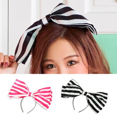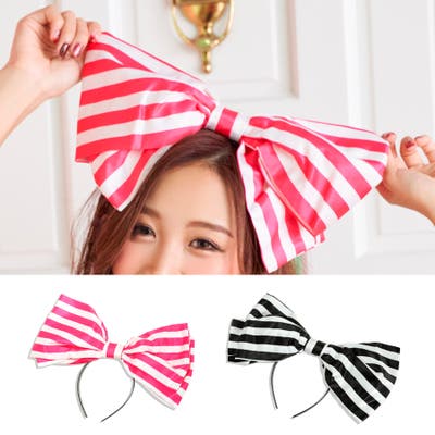 ボーダーデザインビッグリボンカチューシャ ハロウィンコスプレ コスプレ小物