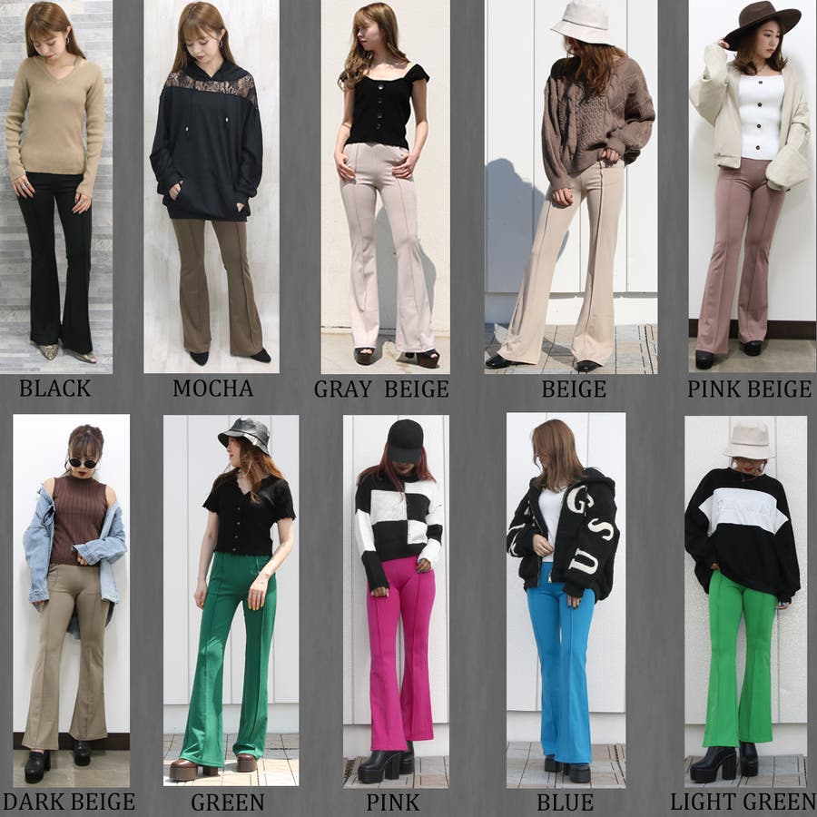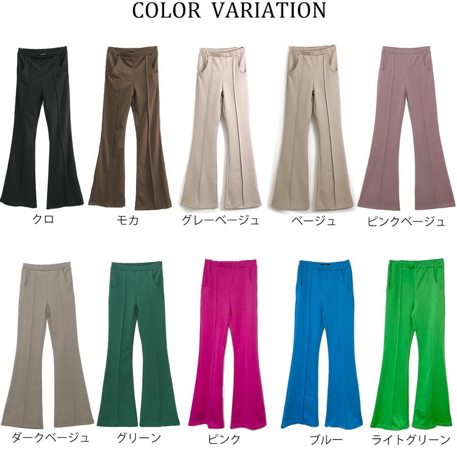 レディース/ファッション/おしゃれ/新規/新作/新着/女性/大人/合わせやすい/定番/流行/トレンド/ボトム/レディースボトム/フレアパンツ/ベルボトム/レギンス/裾フレア/フレアパンツ/美脚/モード/カジュアル/フェミニン/シンプル/ベーシック/スタイリッシュ/プチプラ/センタープレス/春/夏/秋/冬/オールシーズン/AW/SS/韓国/韓国ファッション/黒/クロ/ブラック/ベージュ/ブラウン/グレー/グレーベージュ/グリーン/ピンク/ブルー/青/ライトブルー