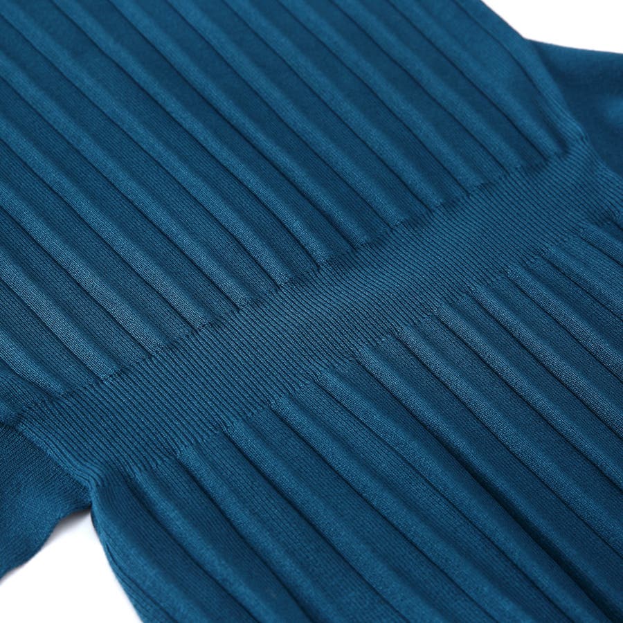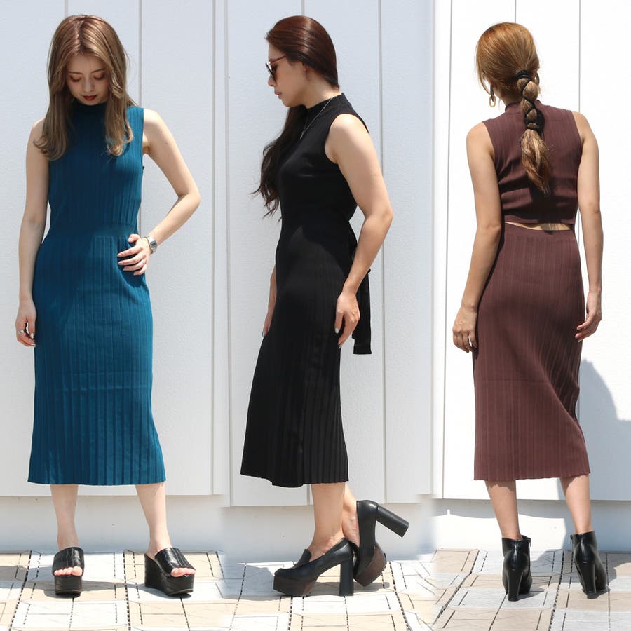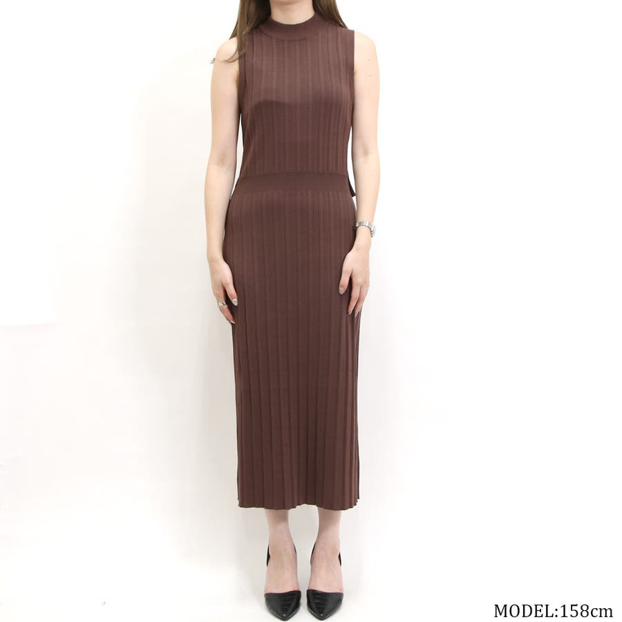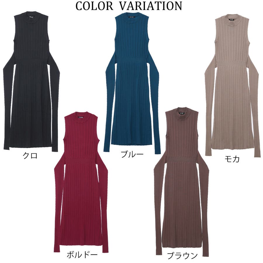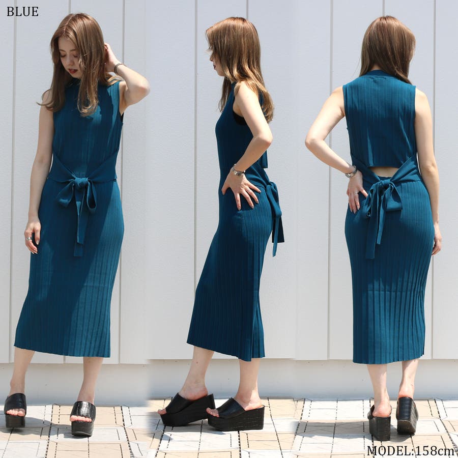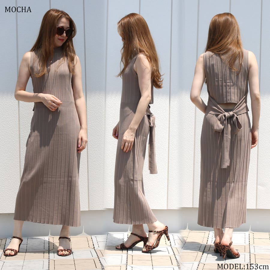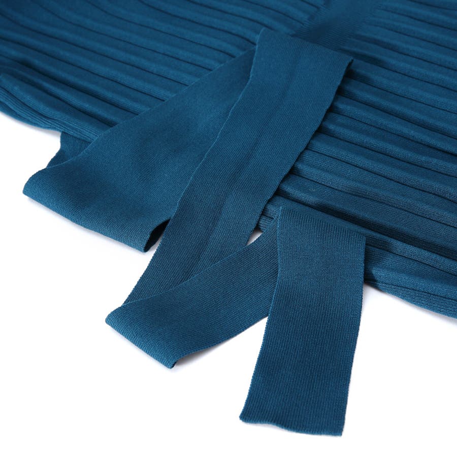 リブハイネックノースリリボンワンピース レディース ファッション