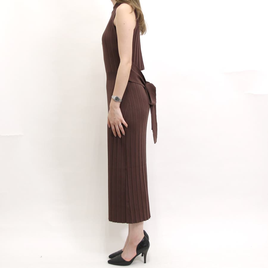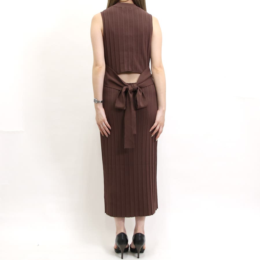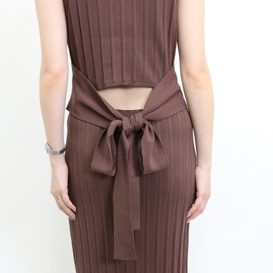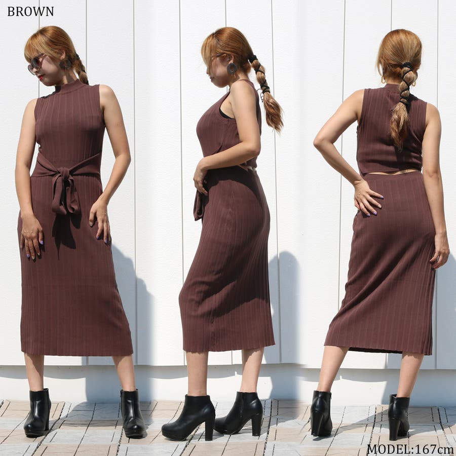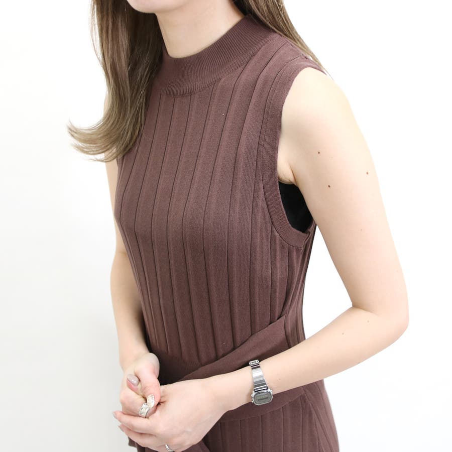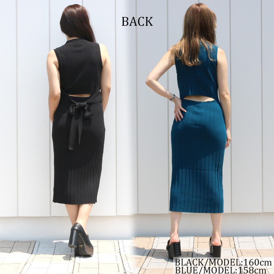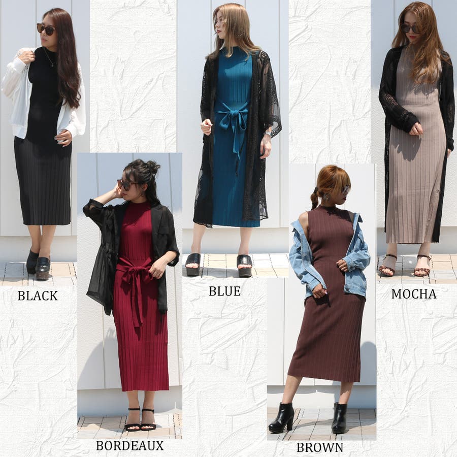 リブハイネックノースリリボンワンピース レディース ファッション