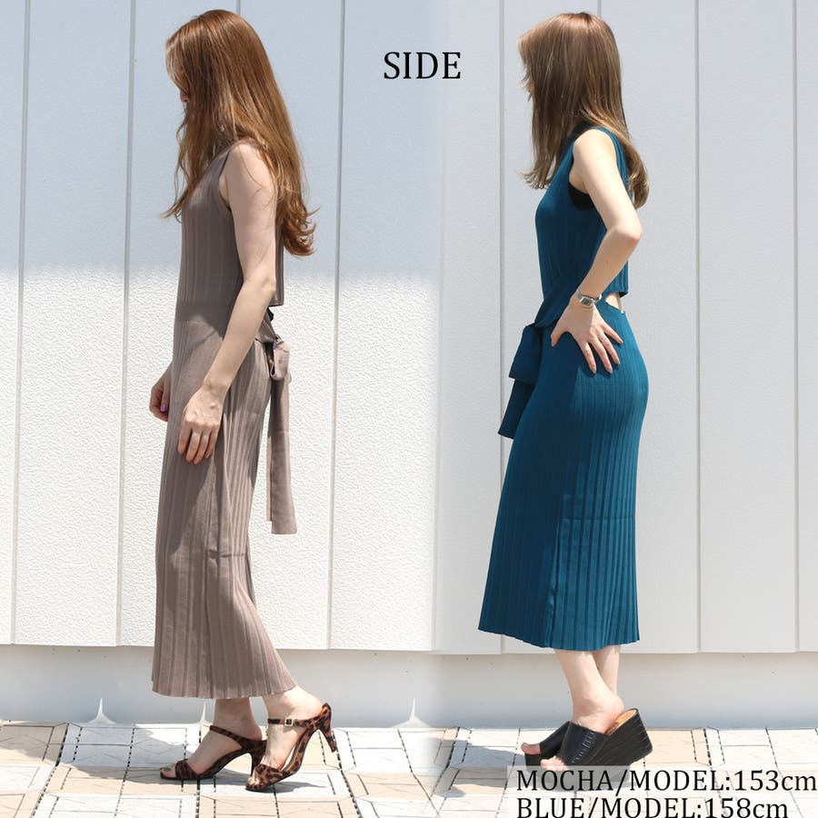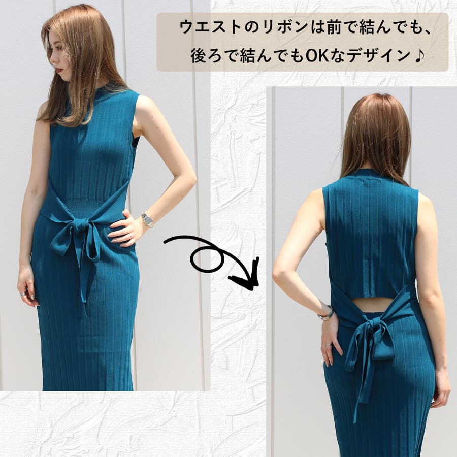 ウエストのリボンがポイントで可愛くすっきりメリハリのあるシルエットをメイク♪