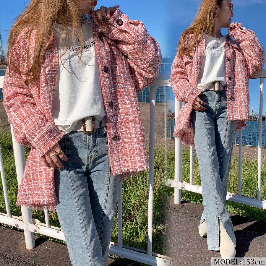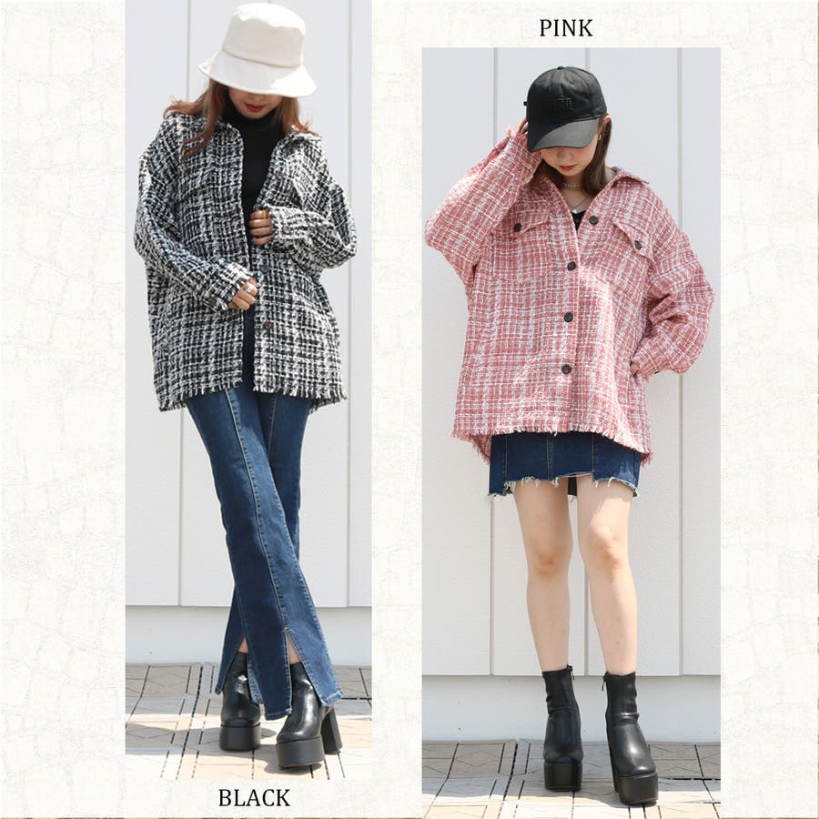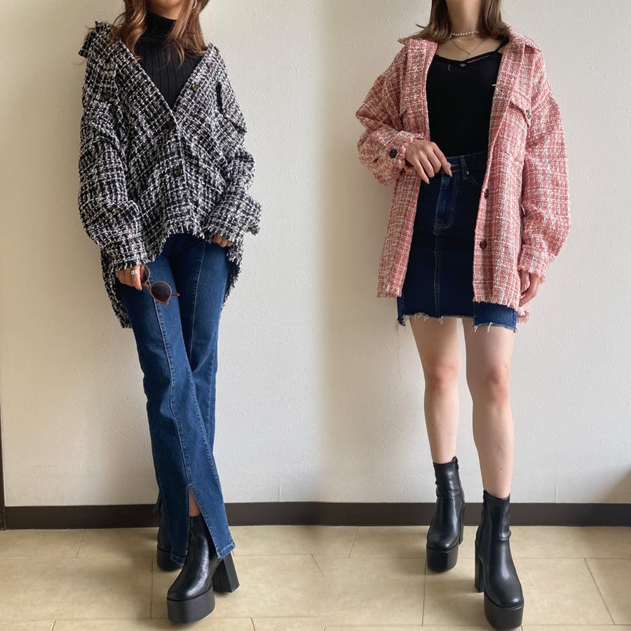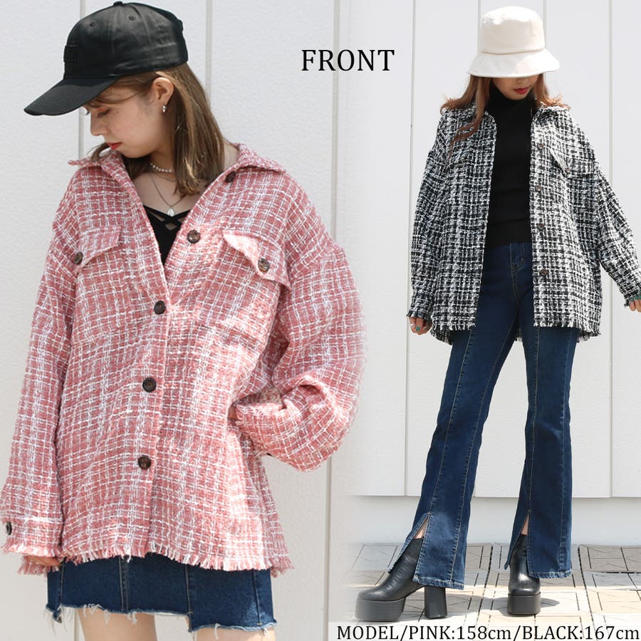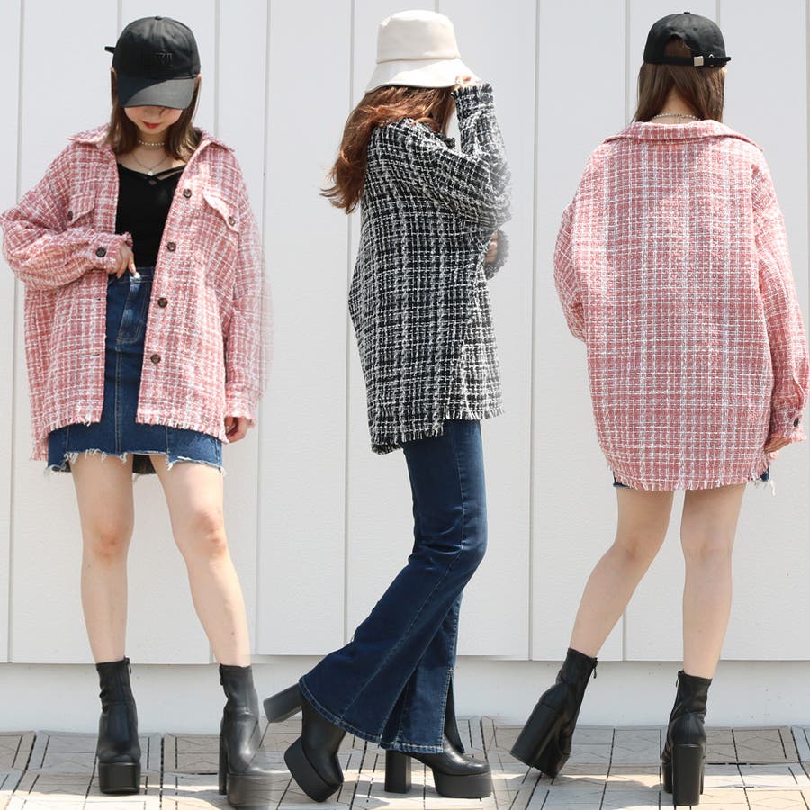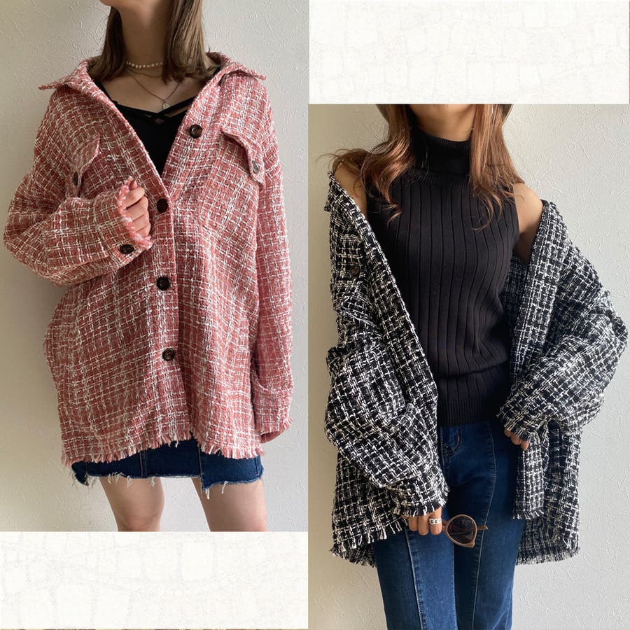 ツィードビッグシャツ レディース ファッション