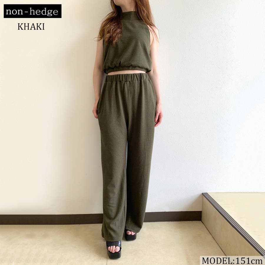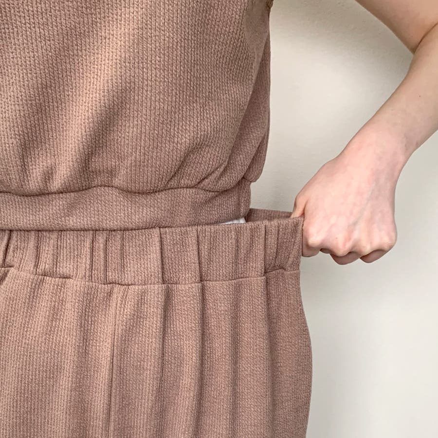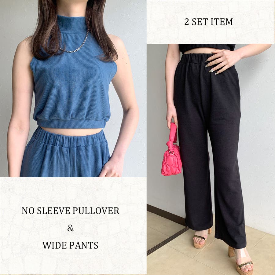 リブノースリプルオーバー・ワイドパンツセット