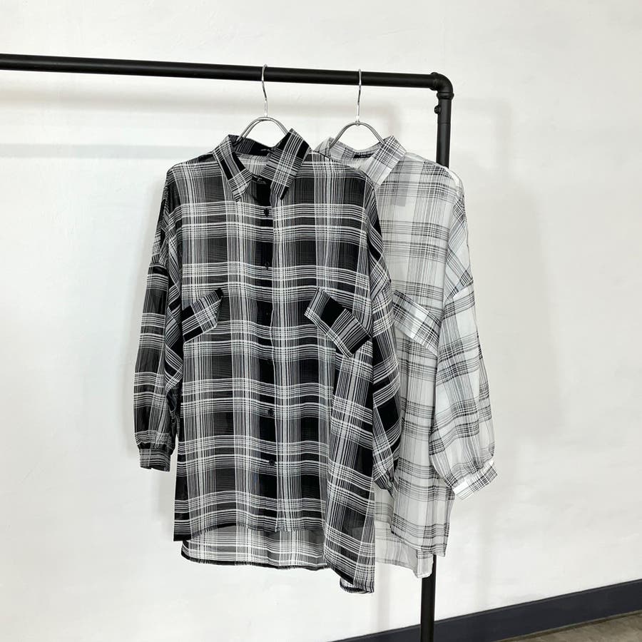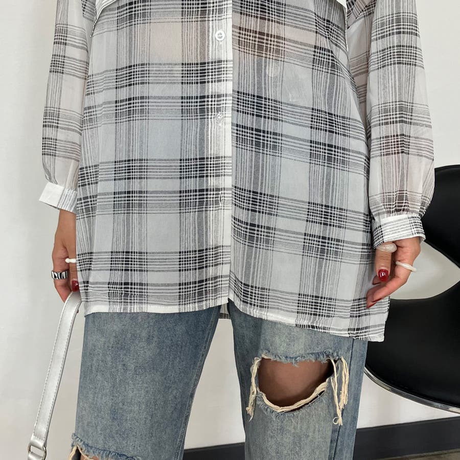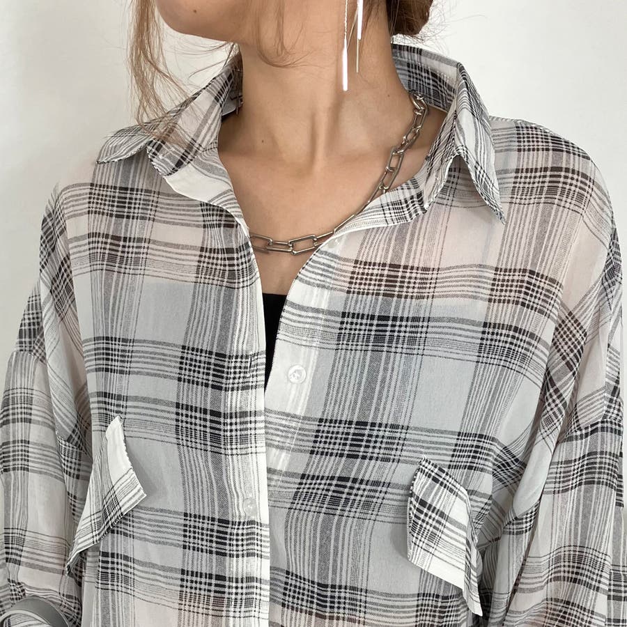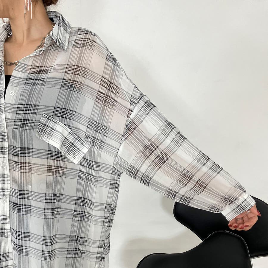シアーチェック柄ビッグシャツ