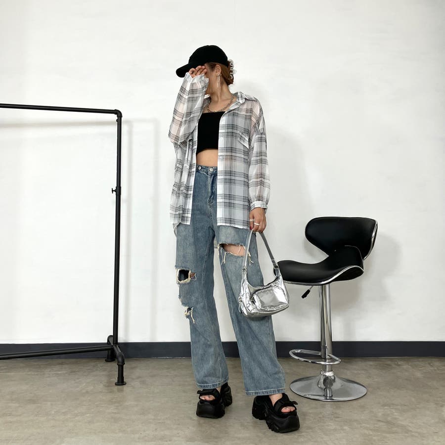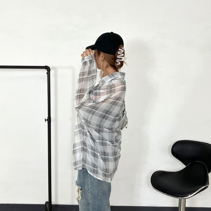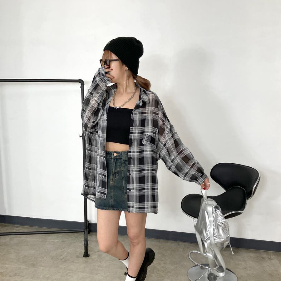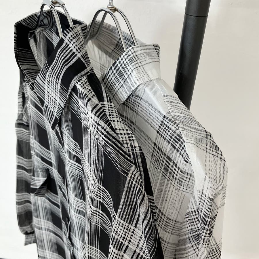 シアーチェック柄ビッグシャツ