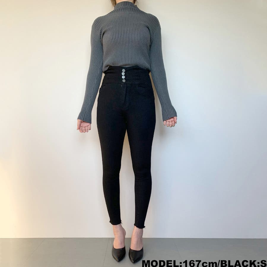 ★WEB限定★ハイウエストボタンスキニーパンツ