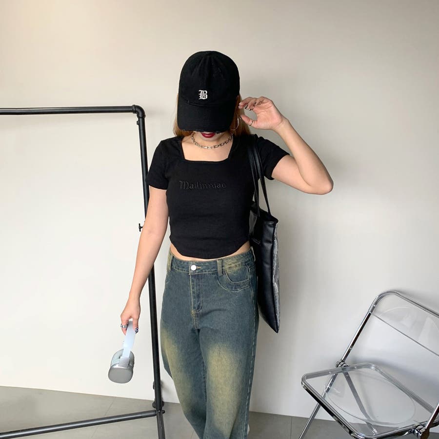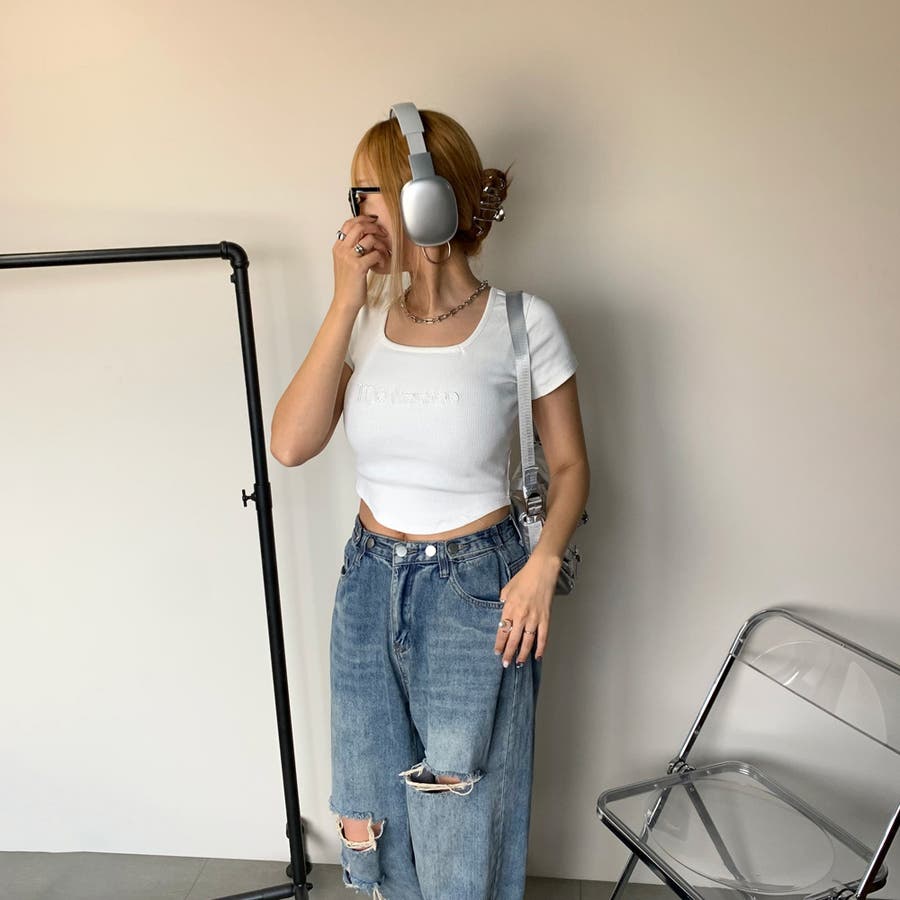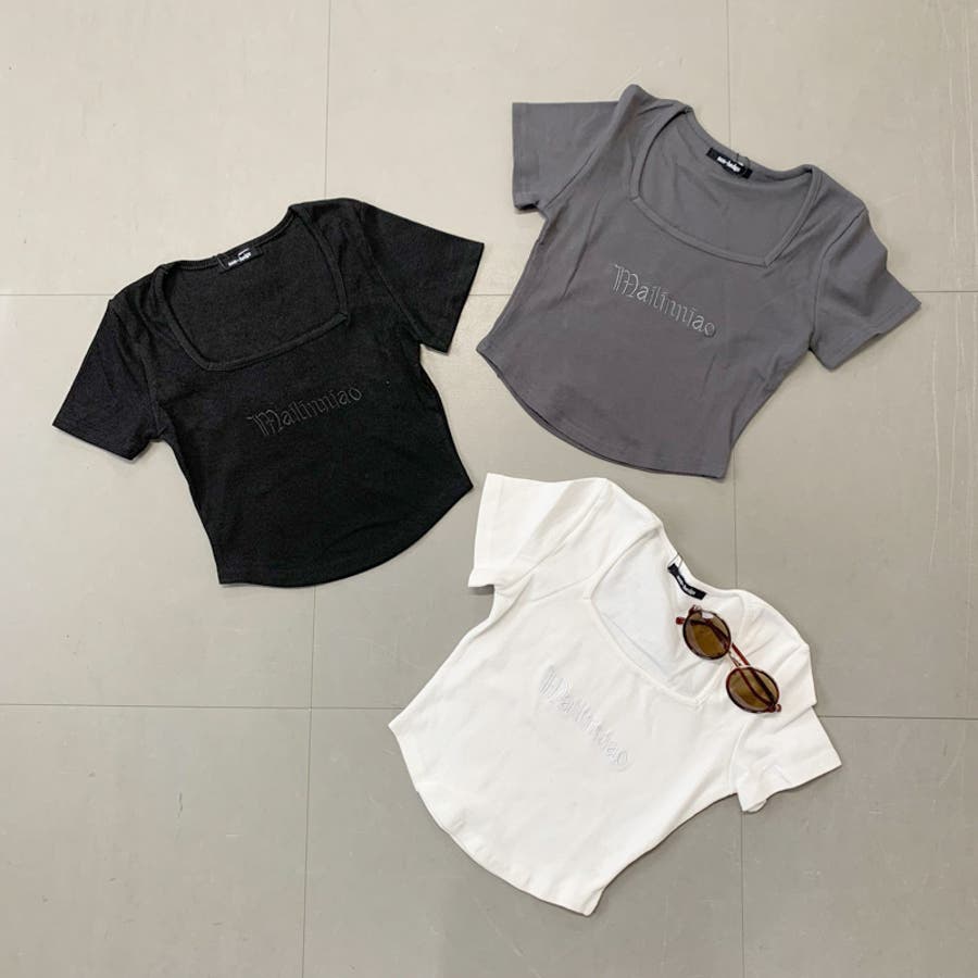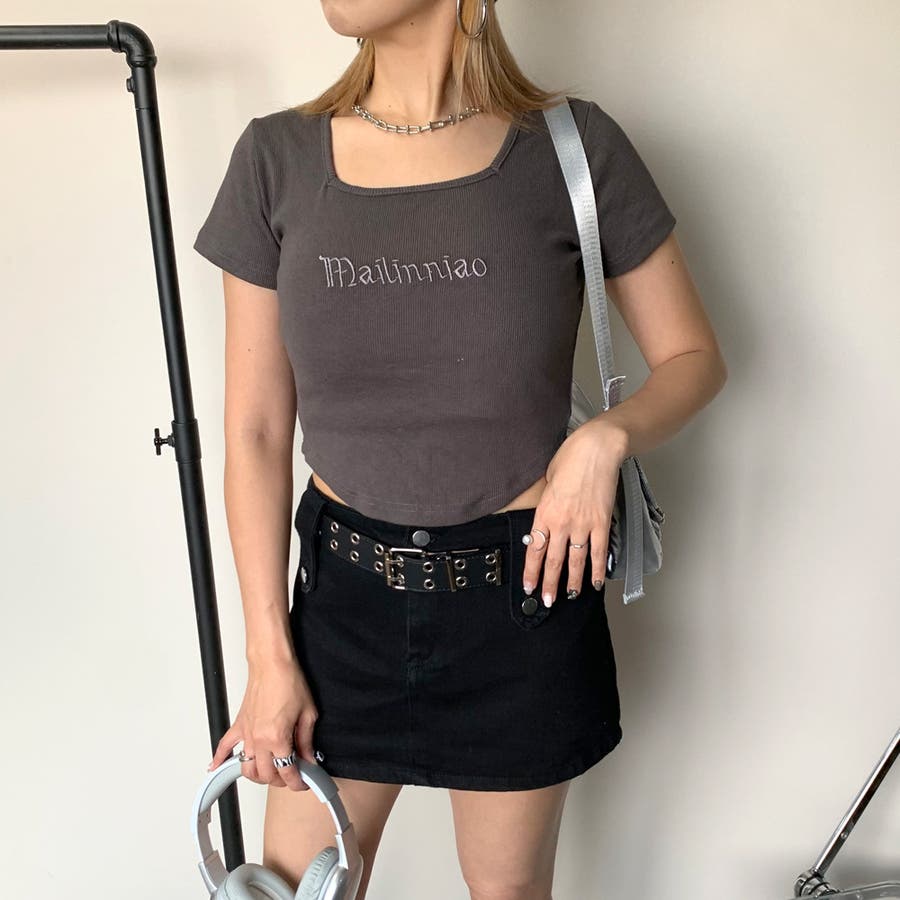 刺繍ロゴスクエアネックチビTシャツ