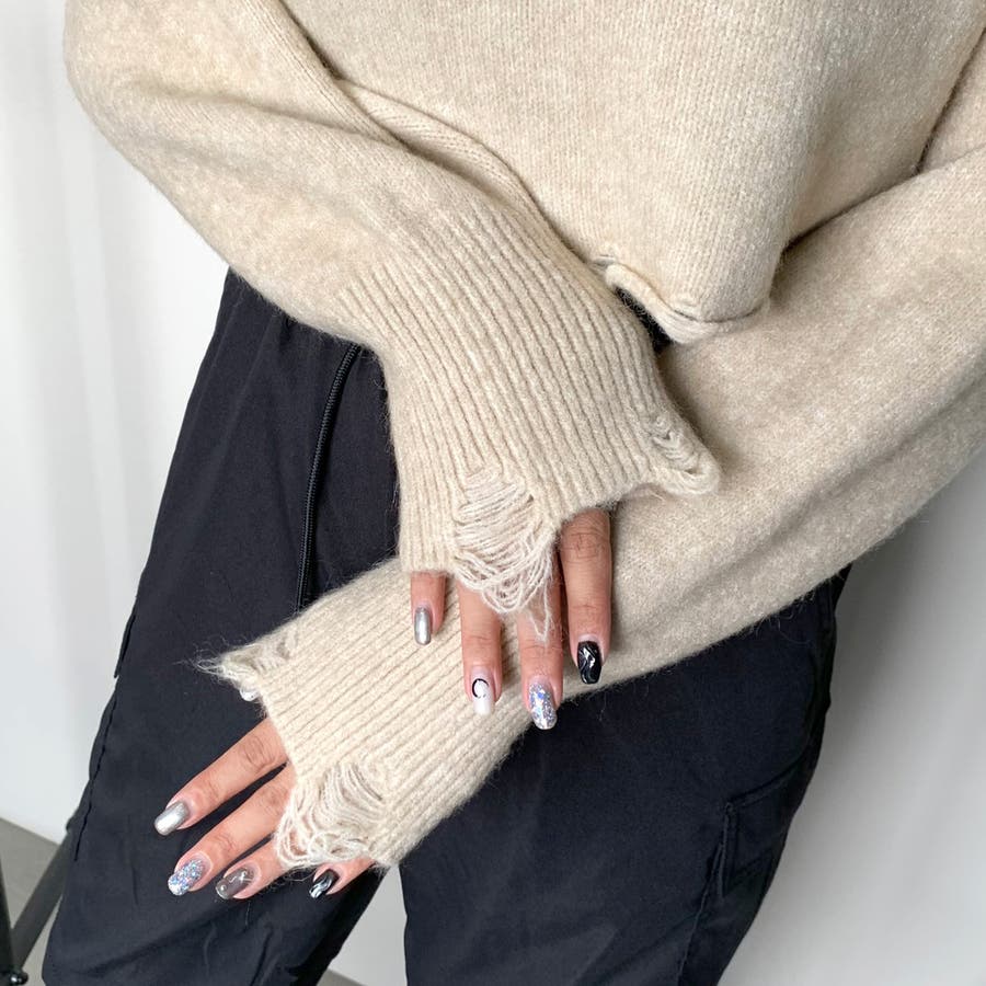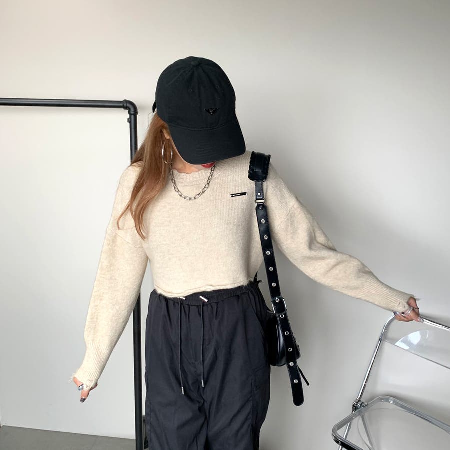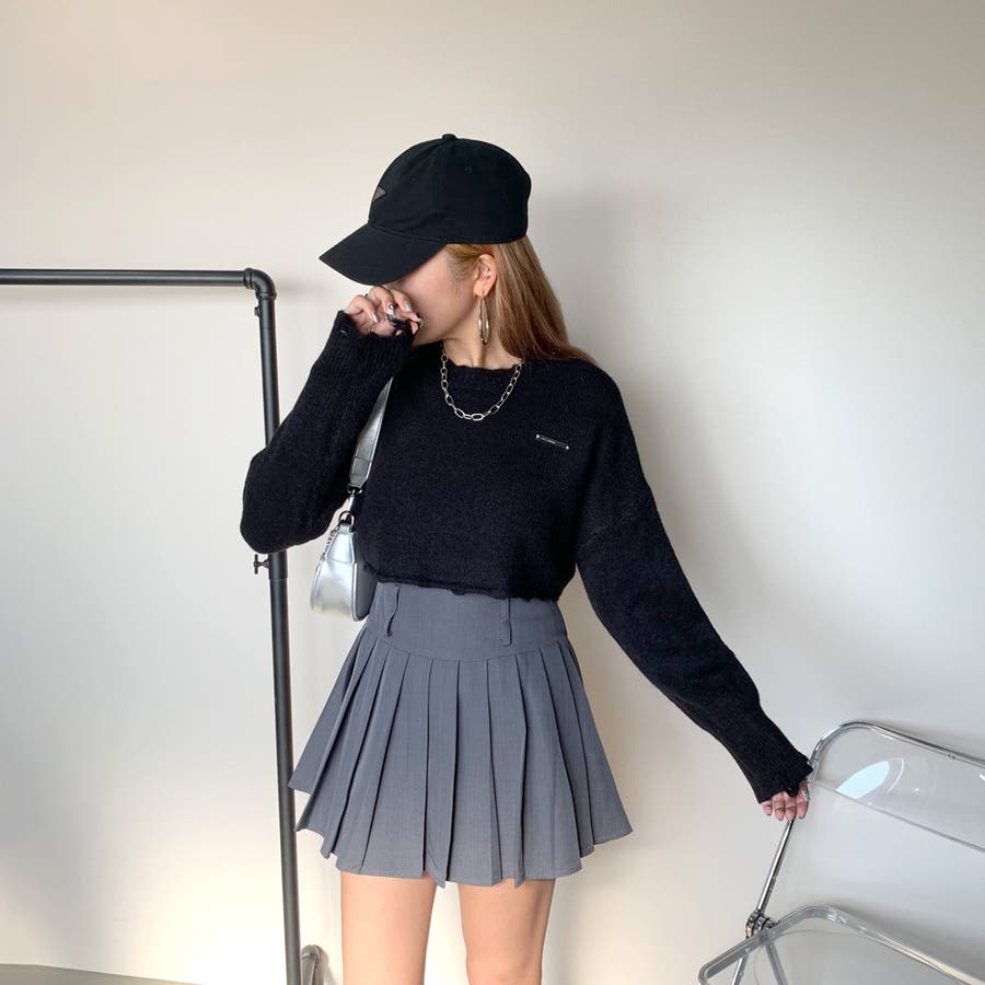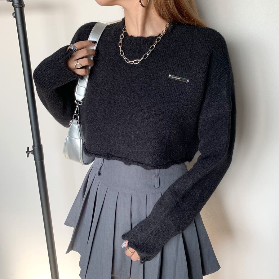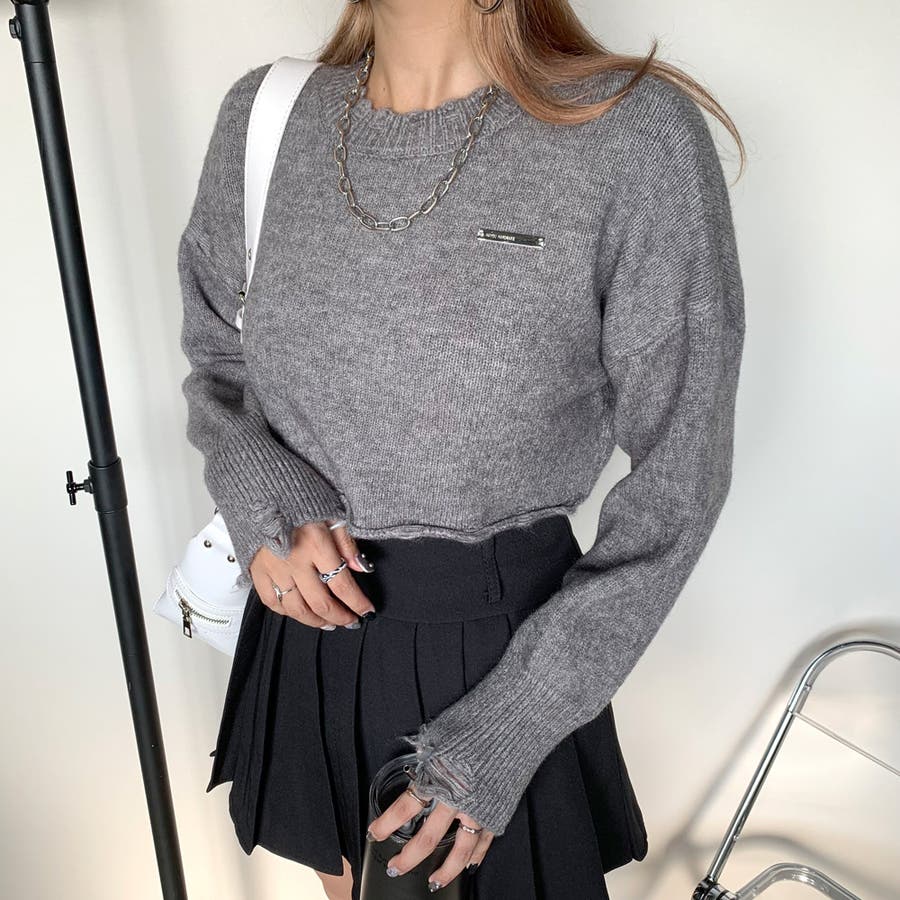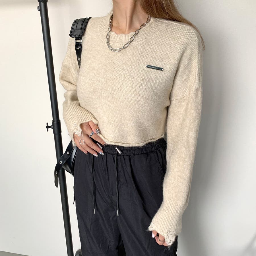 レディース/ファション/女性/大人/おしゃれ/合わせやすい/韓国/韓国ファッション/10代/20代/30代/40代/50代/秋/冬/秋服/冬服/AW/新作/新着/新規/人気/定番/流行/おすすめ/デイリー/トレンド/カジュアル/大人カジュアル/モード/フェミニン/スポーティー/ギャル/Y2K/可愛い/かわいい/スポーティー/ストリート/トップス/ショート/ショート丈/ミニ/ショートトップス/ショートニット/クロップド丈/長袖/秋 トップス/トップス 韓国/シンプル/ベーシック/デザイン/着回し/コーデ/ロゴ/高身長/身長/モノトーン/ハイウエスト/プレート/ダメージ/ビンテージ/縮性/ニット/トップス/ニットトップス/クラッシュニット/ダメージニット/ブラック/黒/クロ/チャコール/ベージュ