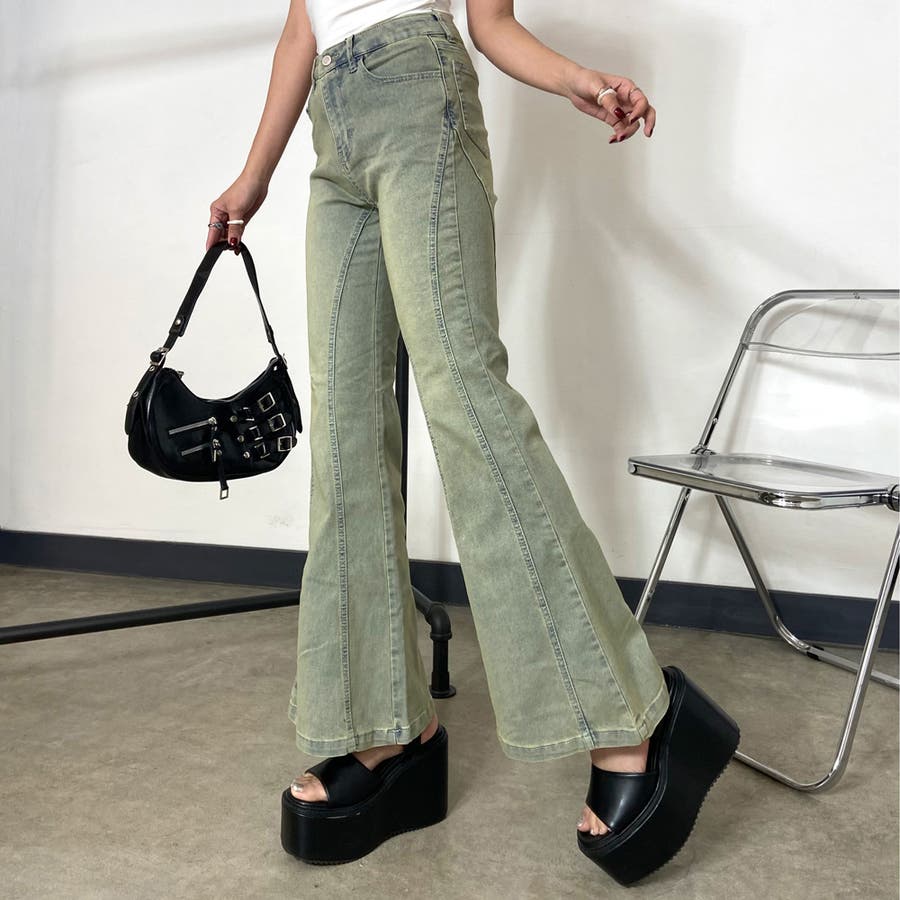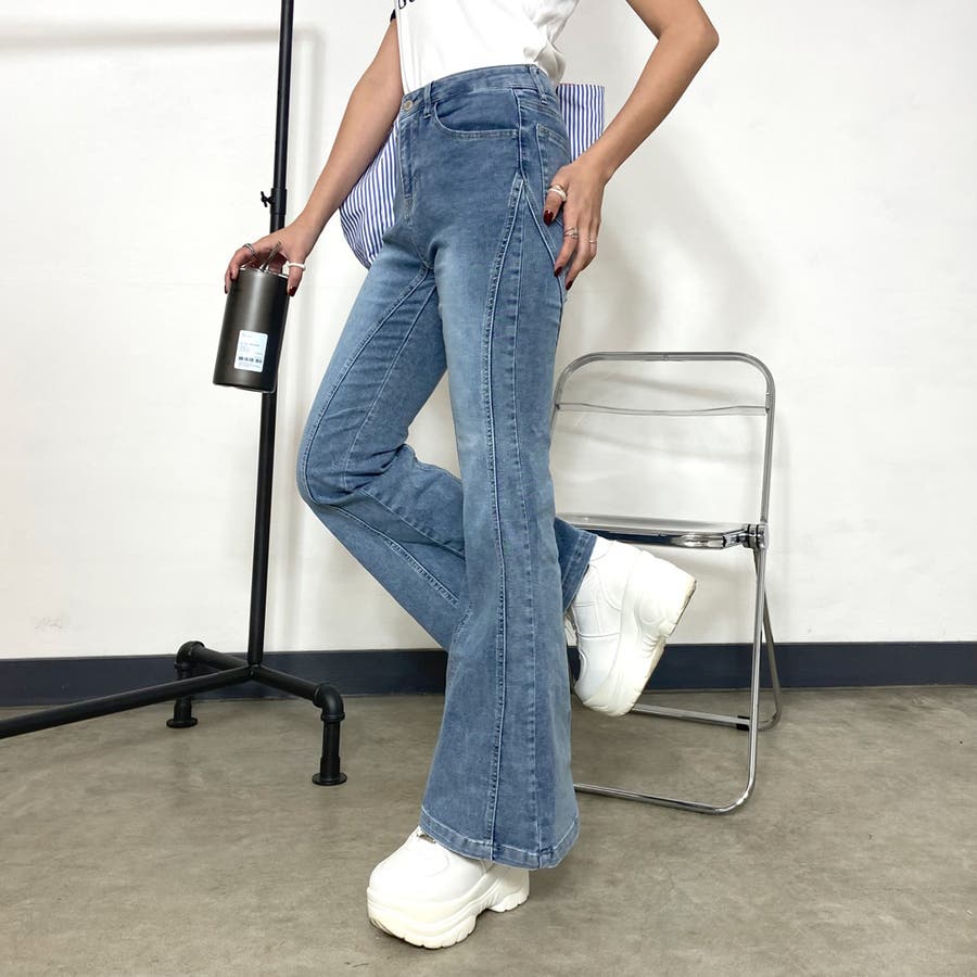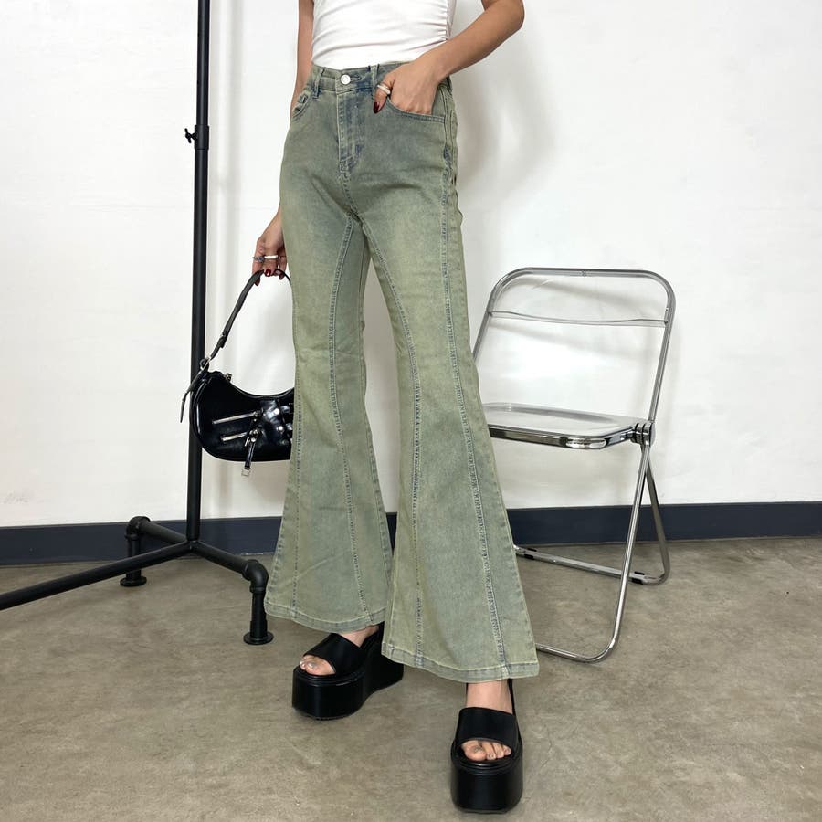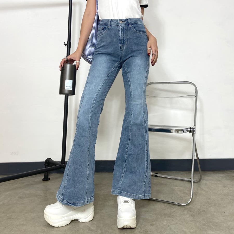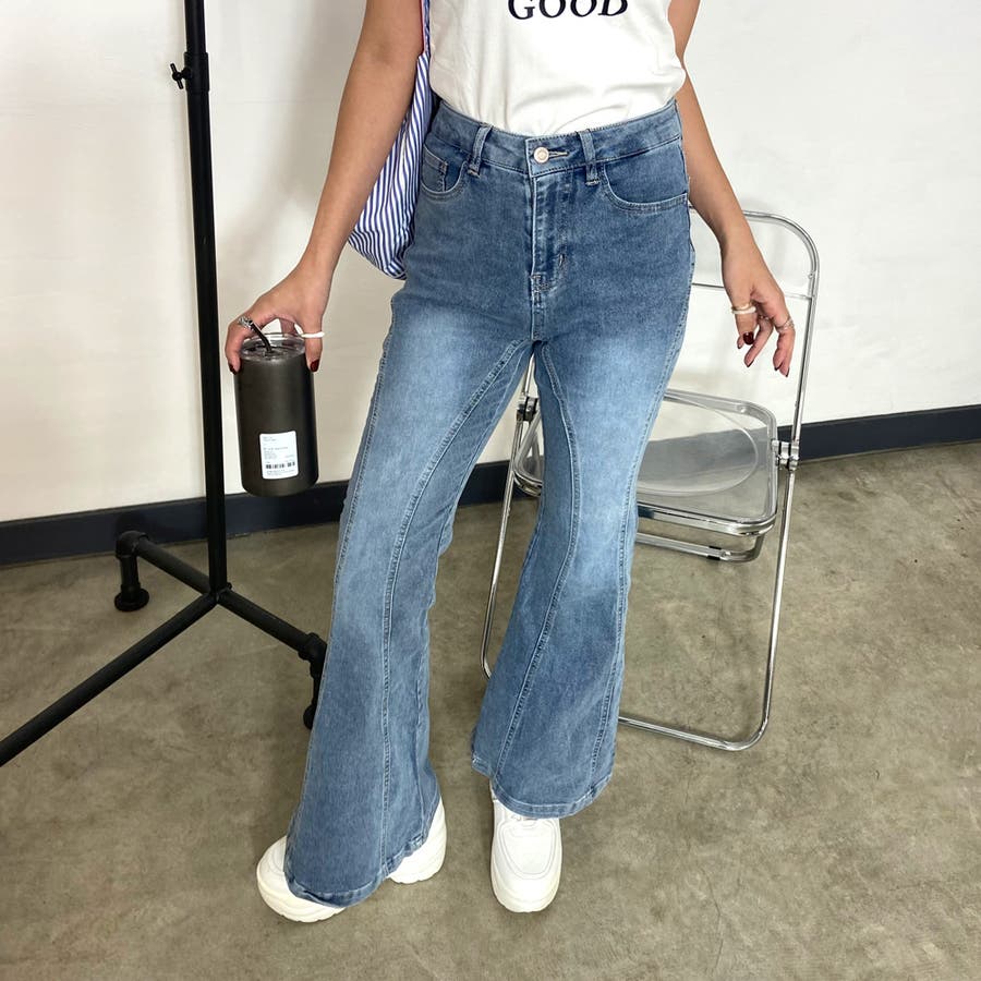 デニムフレアパンツ。