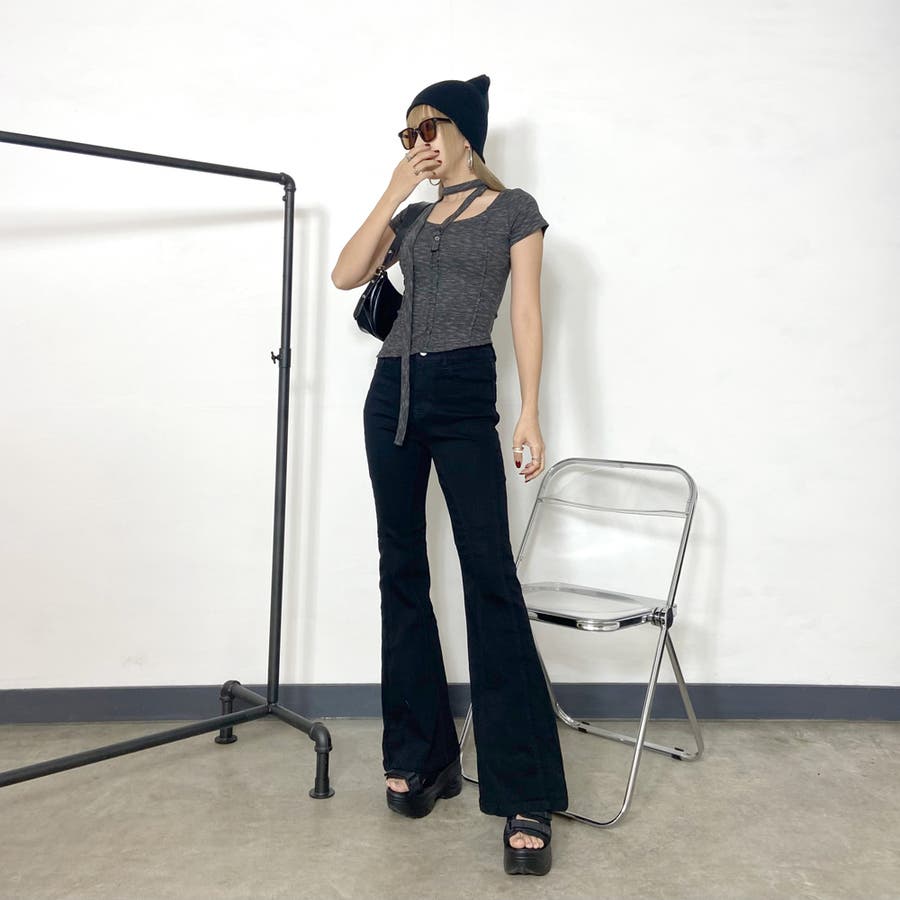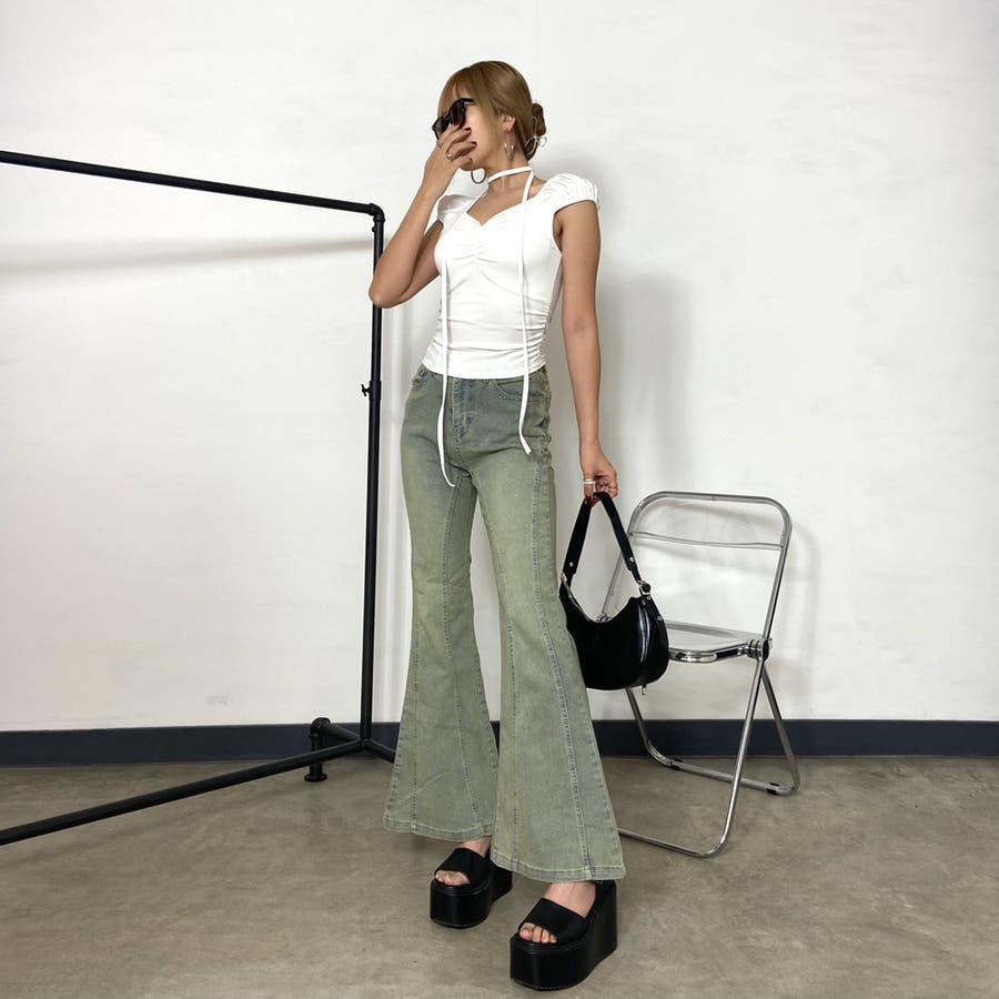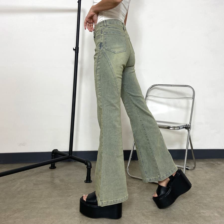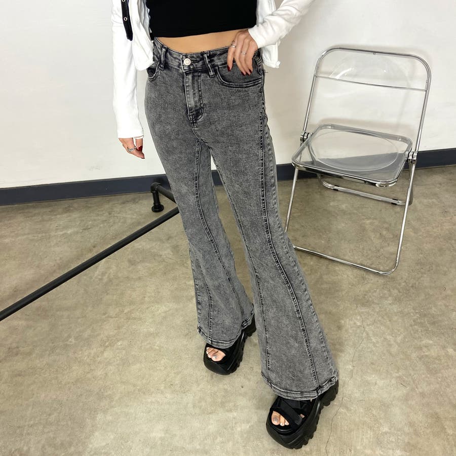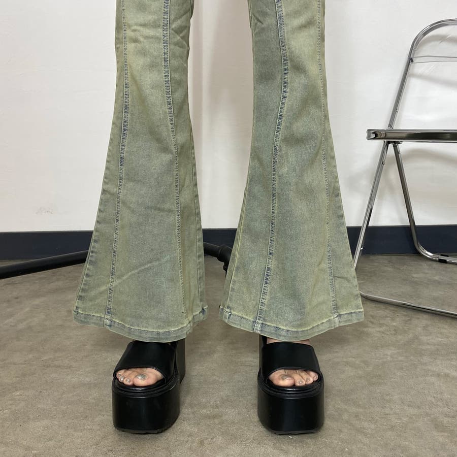 デニムフレアパンツ。