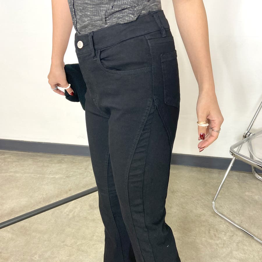 切替デニムフレアパンツ