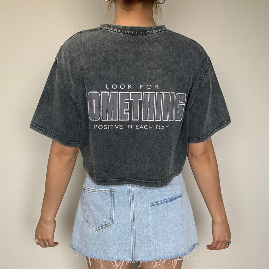 バックロゴがキャッチーなショート丈Tシャツ。