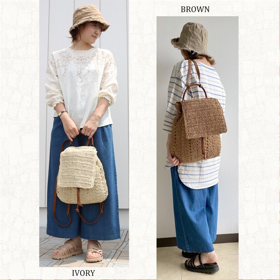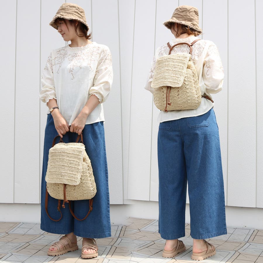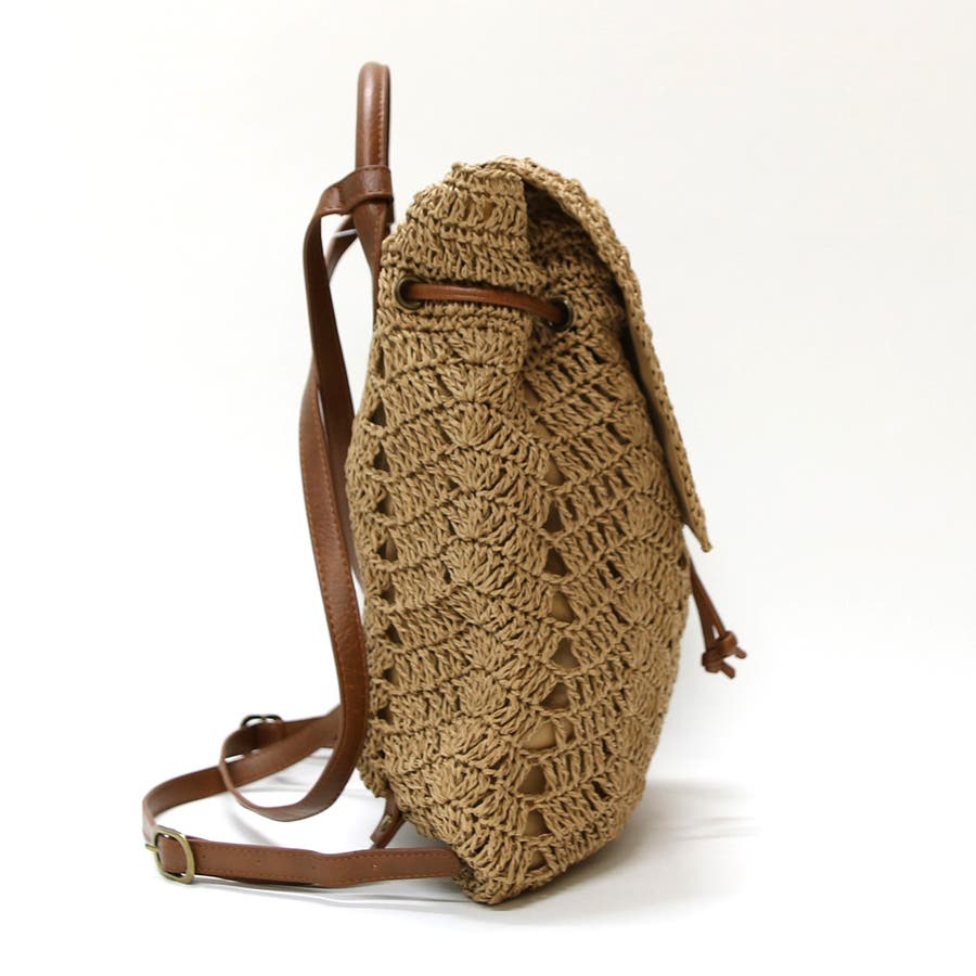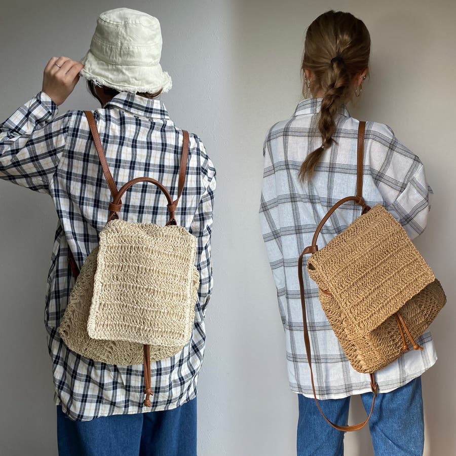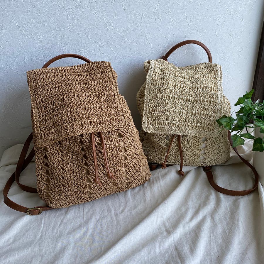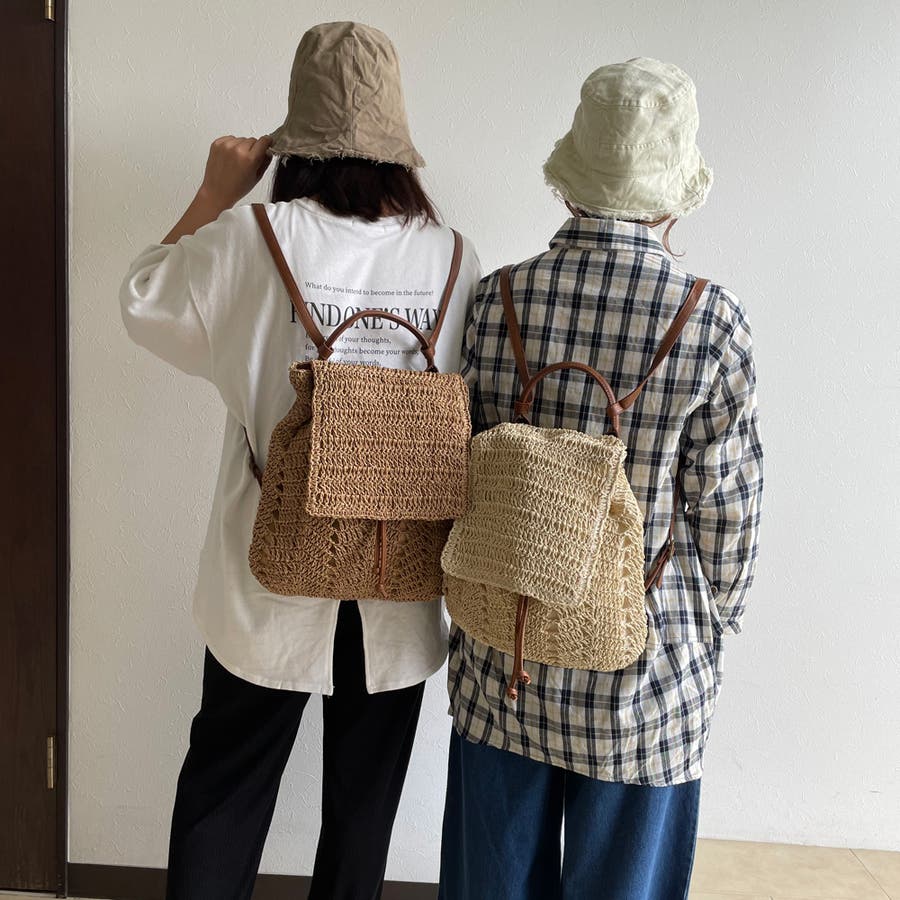 やわらかな雑材素材が涼し気な雰囲気のリュックサックです♪