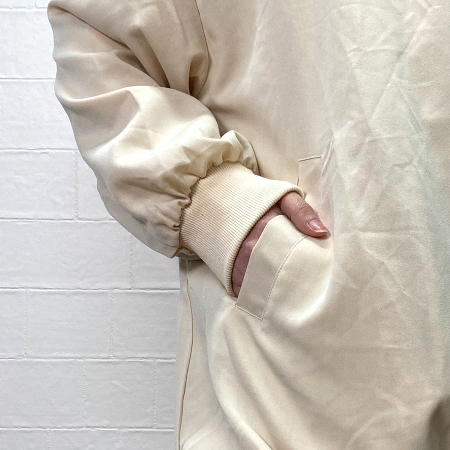 ゆったりとしたシルエットが特徴なツイル素材のブルゾン。