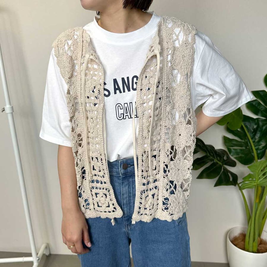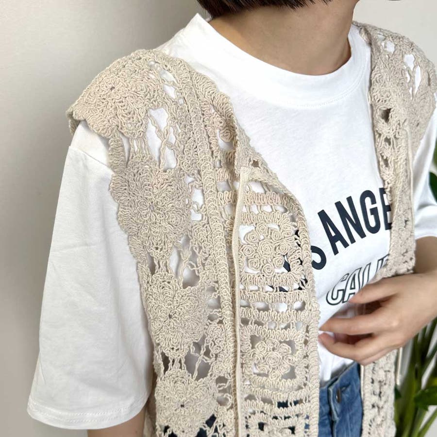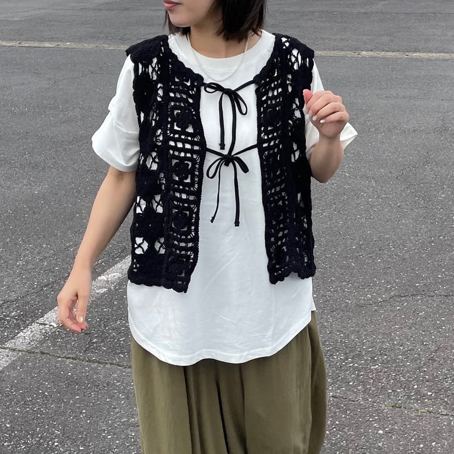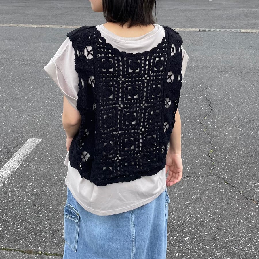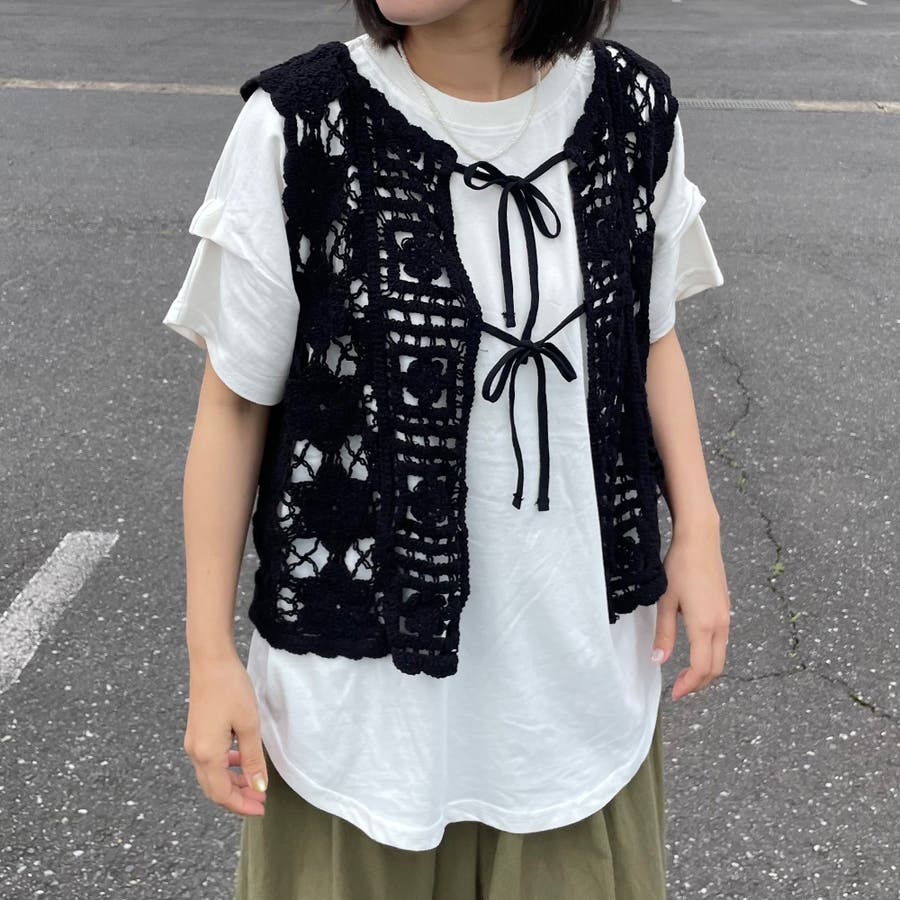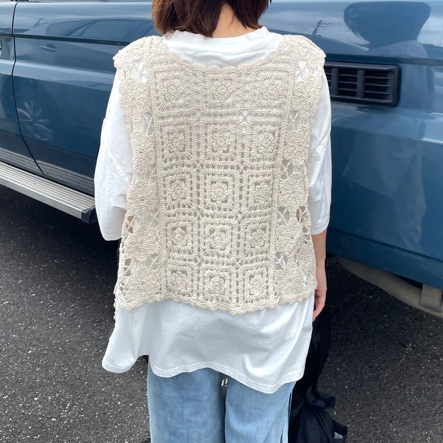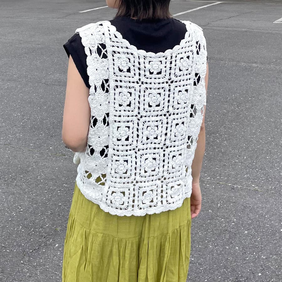 レディース/ファッション/おしゃれ/合わせやすい/大人/女性/春/夏/韓国/韓国ファッション/人気/定番/トレンド/新作/新着/新規/カジュアル/ナチュラル/ストリート/アウトドア/フェス/イベント/キャンプ/ラフ/シンプル/デザイン/無地/モード/ギャル/シアー/メッシュ/サマーニット/ノースリ/タンクトップ/ベスト/軽量/ゆったり/体型カバー/カジュアルダウン/羽織/羽織り/Vネック/レイヤード/オフホワイト/アイボリー/白/SS/ブラック/黒/クロ/かぎ編み/クロシェ