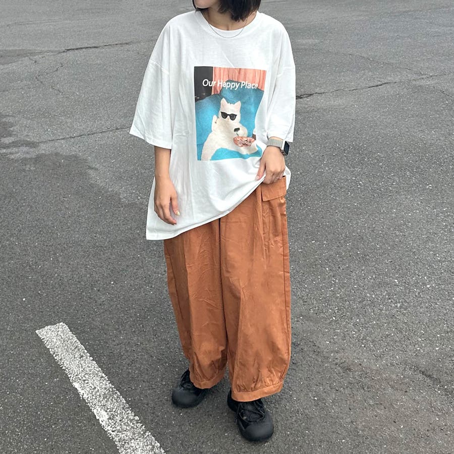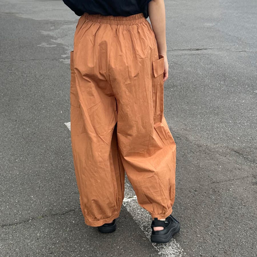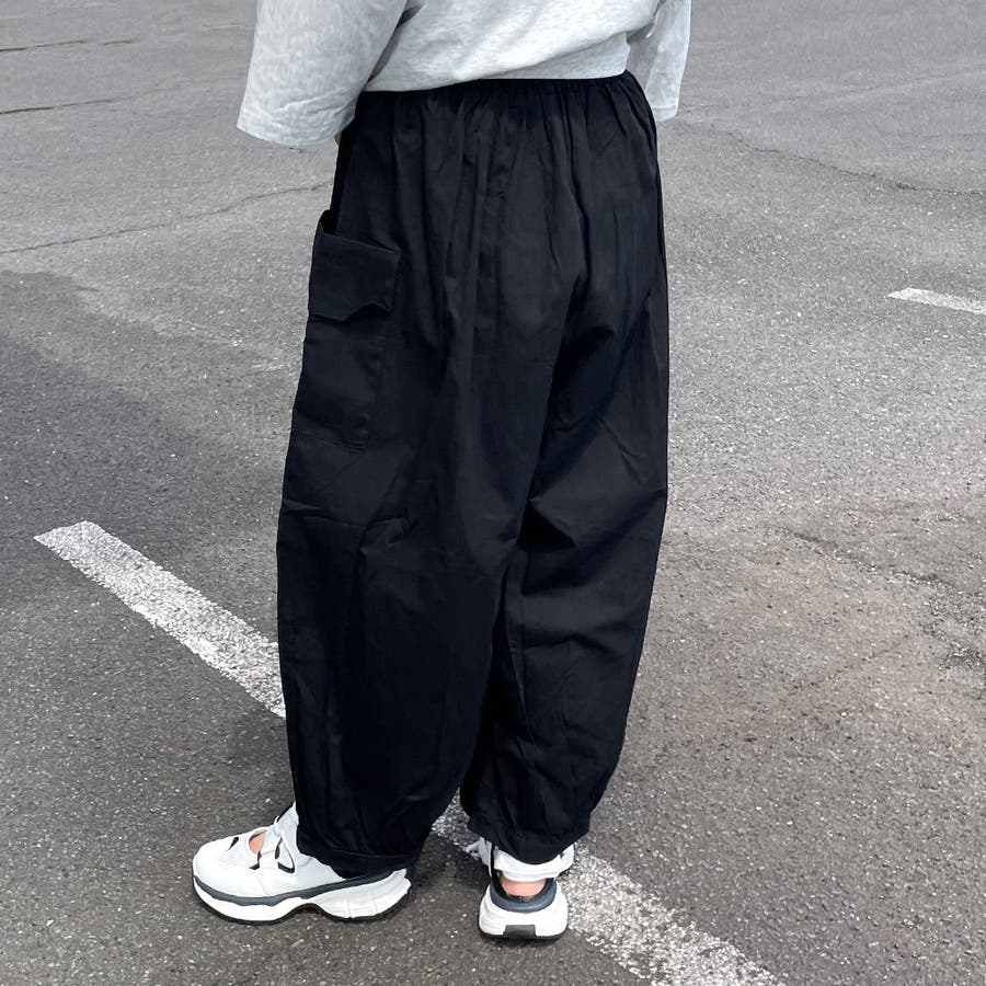 【サイズ】着丈88cm、ウエスト64cm(ゴム仕様)、ヒップ130cm、もも周り84cm、股上36cm、股下55cm、すそ周り50cm