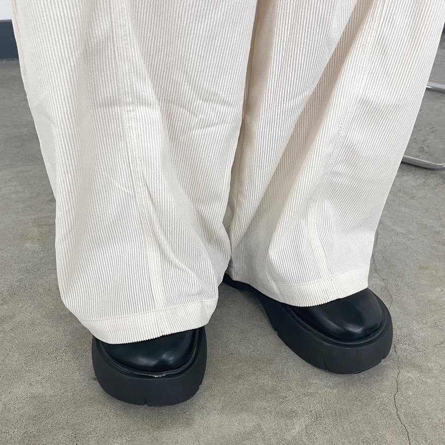 コーデュロイ素材のワイドパンツ。