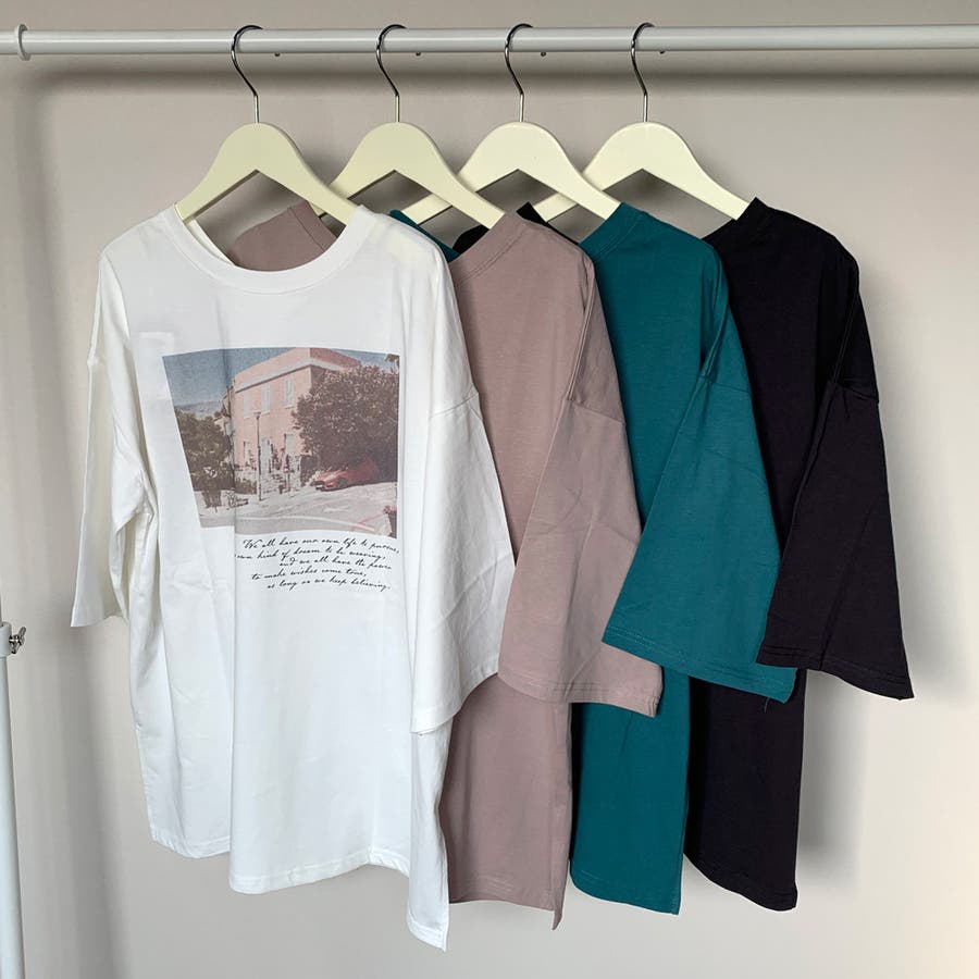 レディース/ファッション/おしゃれ/合わせやすい/大人/女性/秋/韓国/韓国ファッション/人気/定番/トレンド/新作/カジュアル/ナチュラル/リラックス/ストリート/トップス/夏服/秋服/半袖/夏トップス/シンプル/デザイン/ロゴ/プリント/着回し/おすすめ/コーデ/ロング/ロング丈/Tシャツ/ラフ/楽ちん/ゆったり/オーバーサイズ/ホワイト/チャコール/グレー/ベージュ/グリーン/白/灰色/緑/綿/コットン/vネック