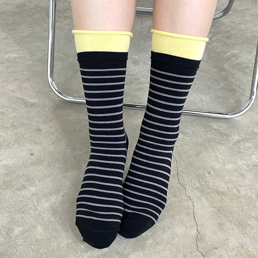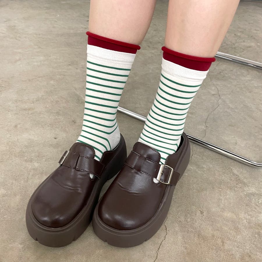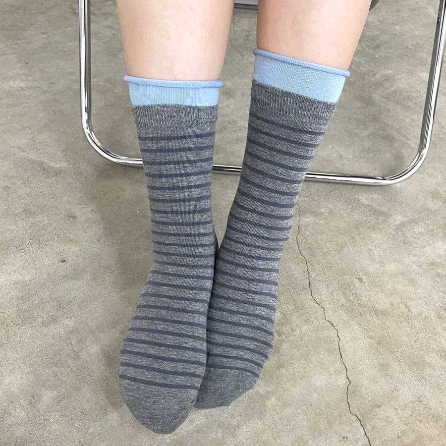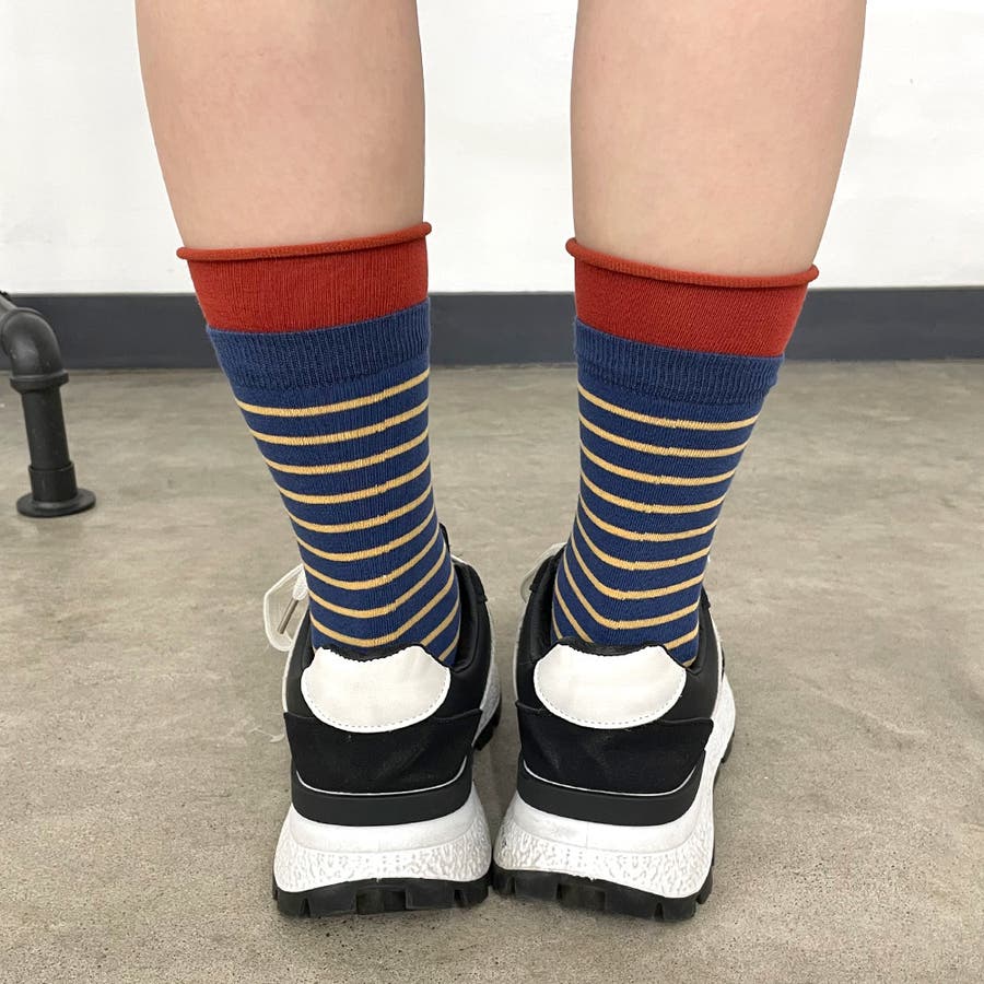 細ボーダーの靴下。
