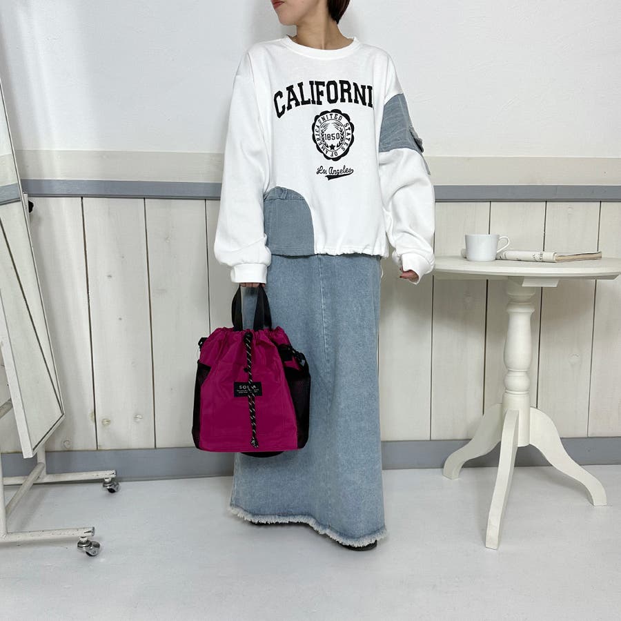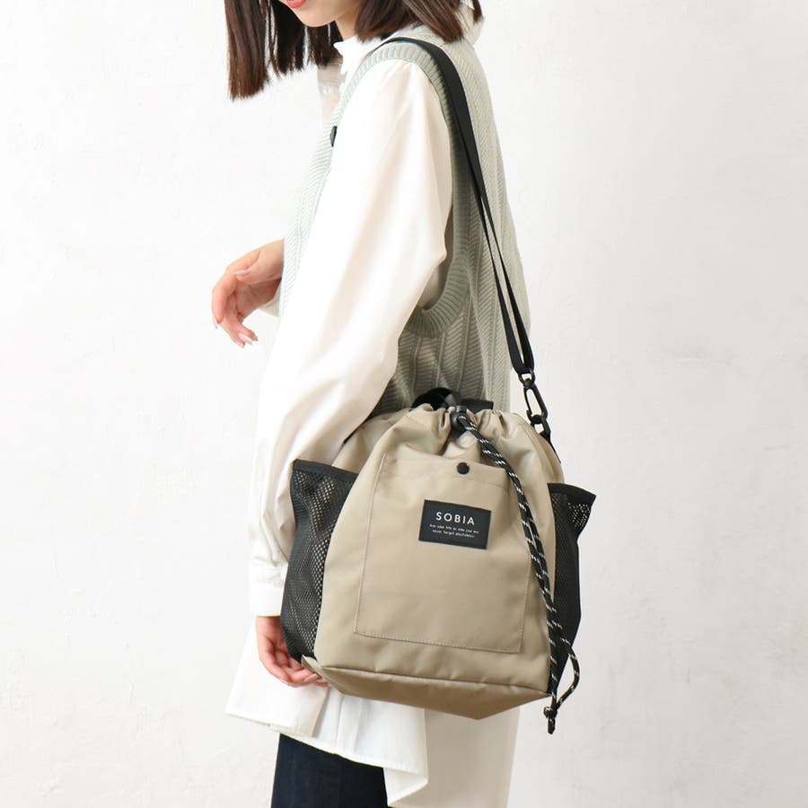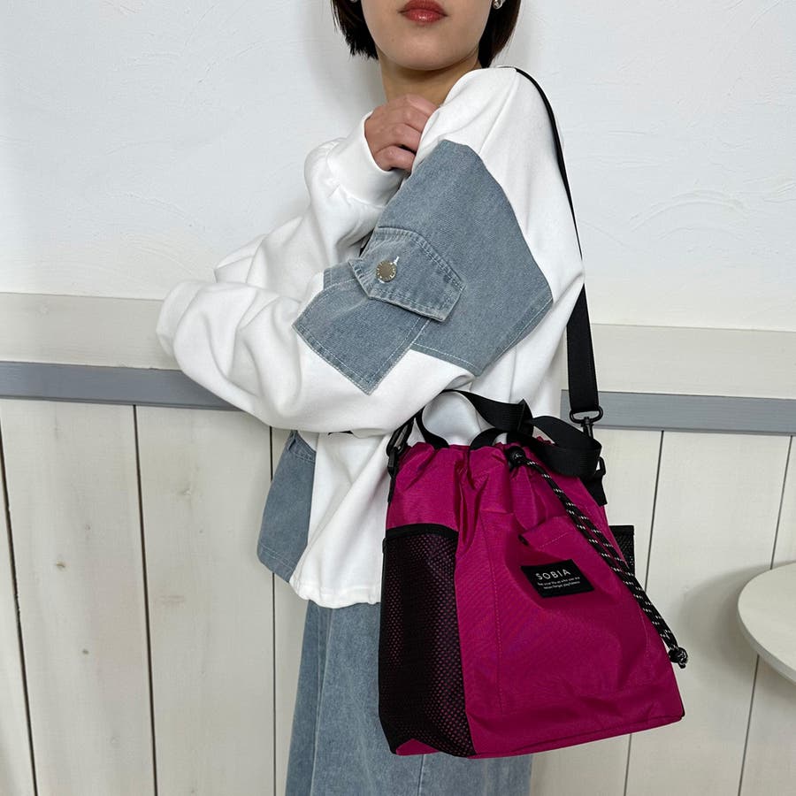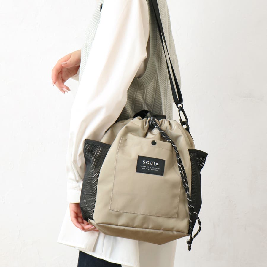 トレンド感のある巾着型ショルダーバッグ。