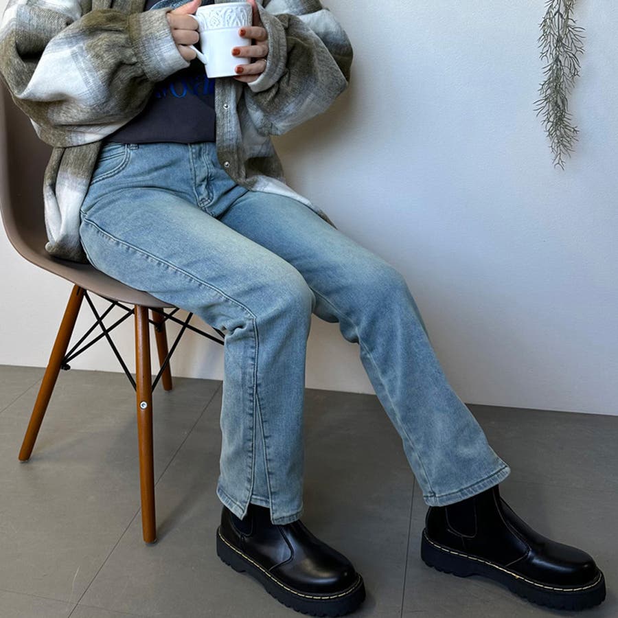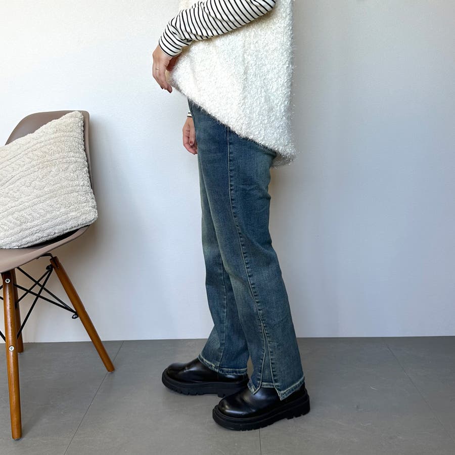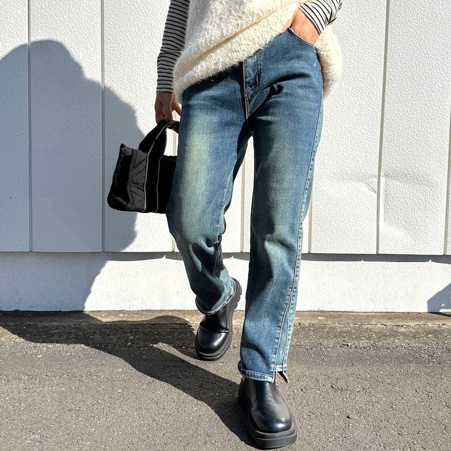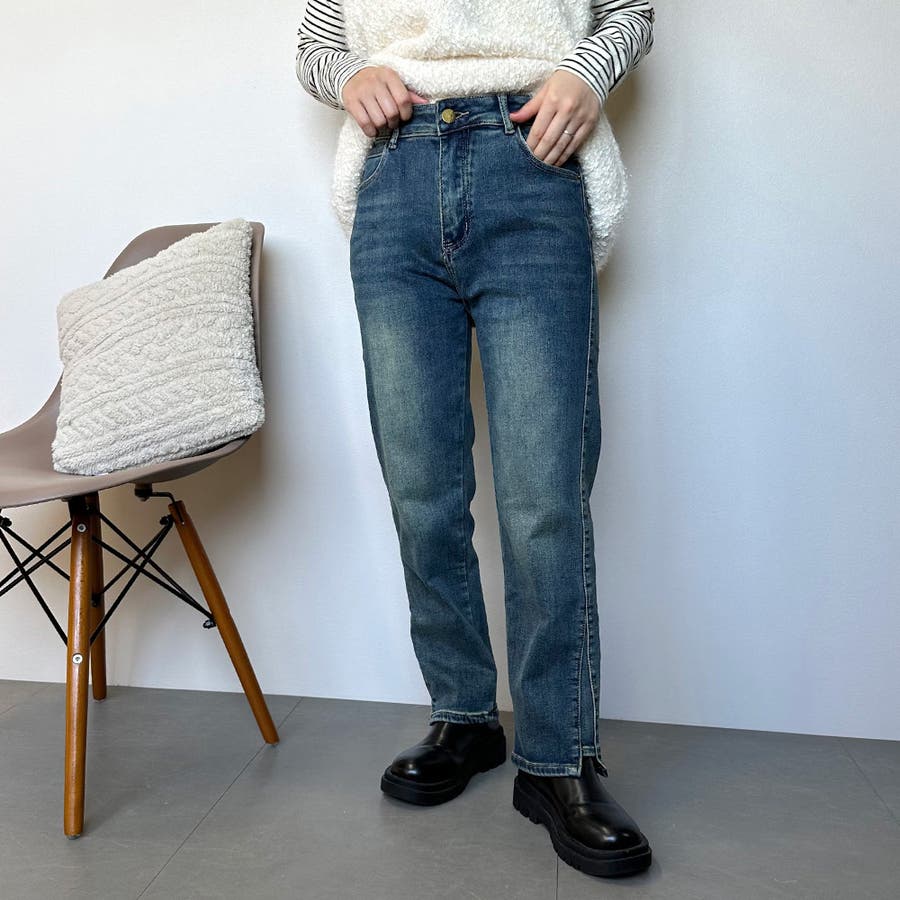 暖スリットデニムパンツ