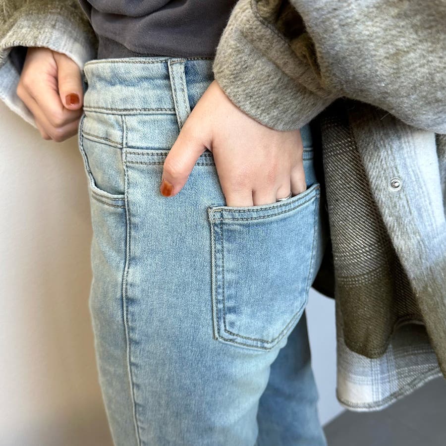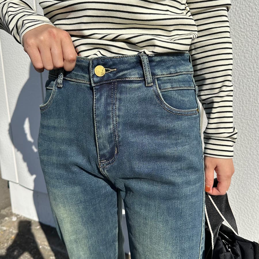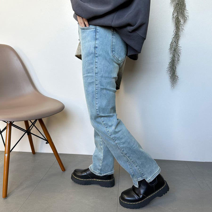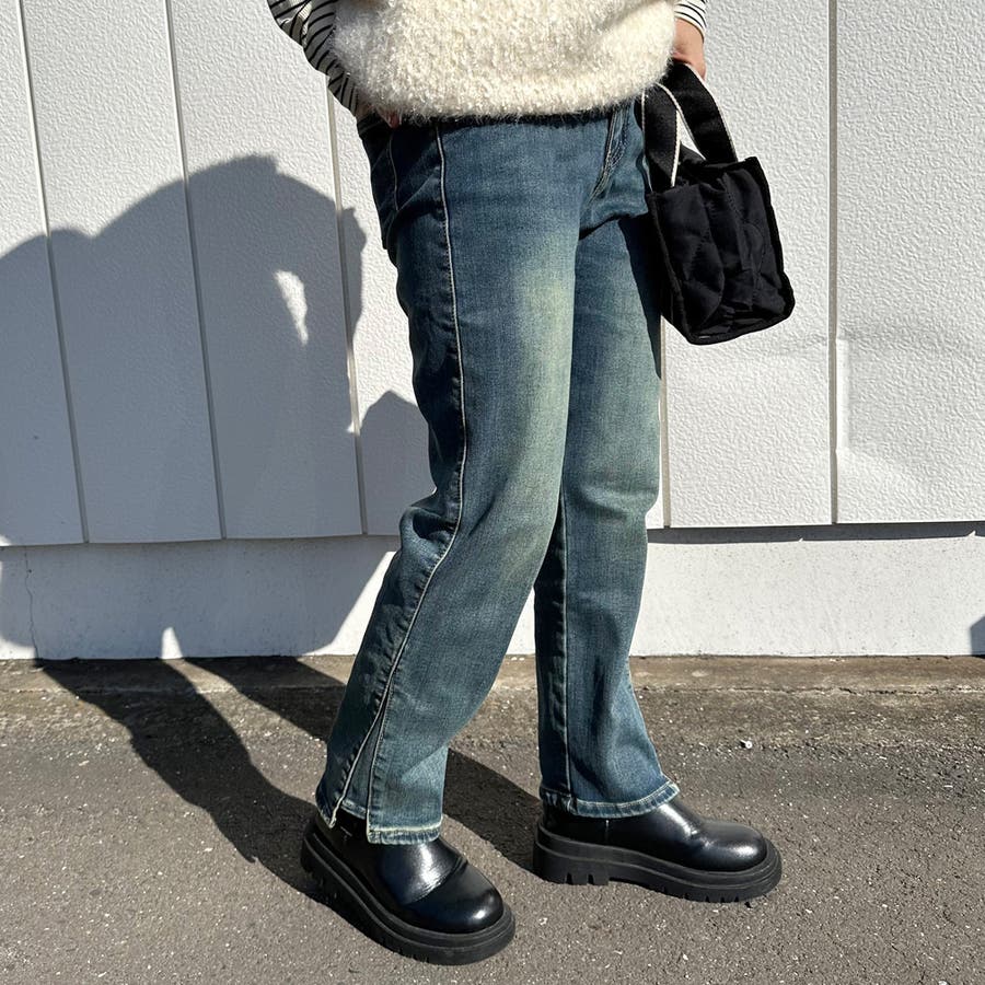 暖スリットデニムパンツ
