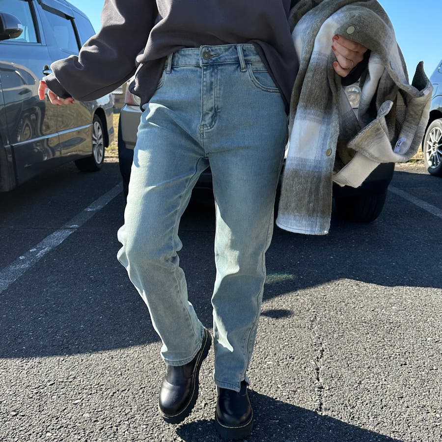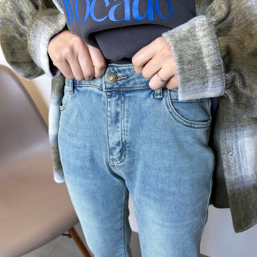 あったか裏起毛のデニムパンツ。