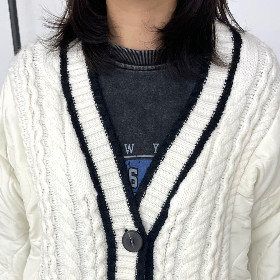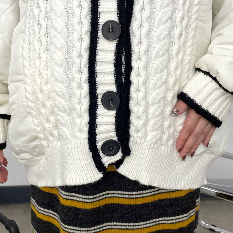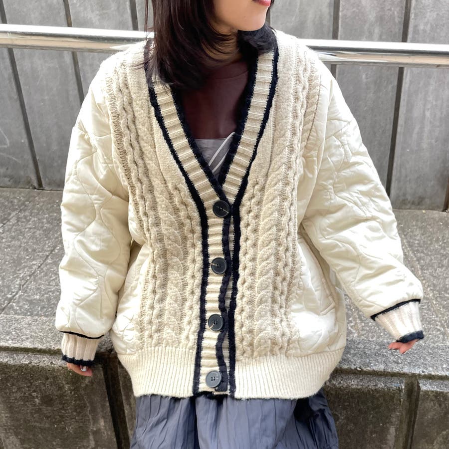 キルト切替ケーブルカーディガン