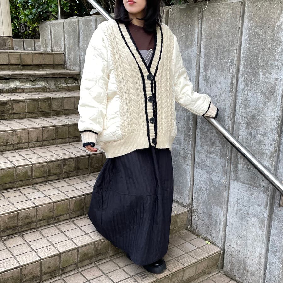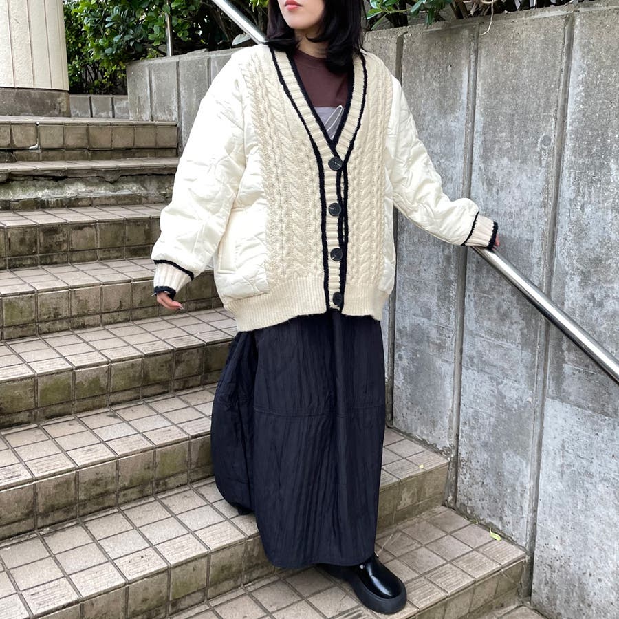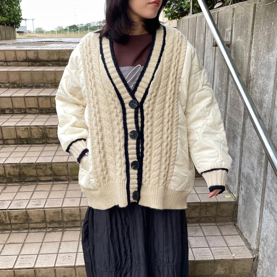 レディース/ファッション/女性/大人/おしゃれ/合わせやすい/韓国/韓国ファッション/10代/20代/30代/40代/50代/春/夏/秋/冬/SS/AW/春夏/秋冬/オールシーズン/春服/夏服/冬服/秋服/春コーデ/夏コーデ/秋コーデ/冬コーデ/新作/新着/新規/人気/定番/流行/おすすめ/トレンド/カジュアル/大人カジュアル/ナチュラル/大人ナチュラル/ナチュラルカジュアル/トレンドカジュアル/ミセス/きれいめ/モード/フェミニン/セクシー/スポーティー/トラッド/ストリート/メンズライク/可愛い/かわいい/着回し/ラフ/コーデ/レイヤード/スッキリ/クローゼット/ラフ/大きめ/大きいサイズ/ゆったり/2025新作/体型カバー/長め/ゆったり/リラックス/着やすい/ママコーデ/高身長/低身長/楽ちん/コスパ/高見え/着映え/柔らか/上品/抜け感/着回し力/活躍/きれい/綺麗/華奢見せ/大人可愛い/ゆるシンプル/快適/きれい見え/のびのび/伸縮性/ストレッチ/優秀/通勤/通学/合わせやすい/ふっくら/肌触り/プチプラ/普段着/トップス 新作/トップス 新規/トップス/新作商品/キルト/キルト素材/秋 羽織り/冬 羽織り/秋冬 羽織り/プラスワンアイテム/レイヤード/ブラック/くろ/クロ/黒/ベージュ/オフホワイト/シロ/白/秋 カーディガン/冬 カーディガン/秋冬 カーディガン/アウター/軽アウター/秋 アウター/冬 アウター/秋冬 アウター/長袖/ワイド/キルティング/ケーブル/ケーブルニット/ニットカーディガン/キルト切替