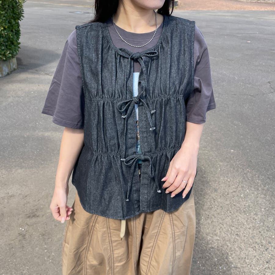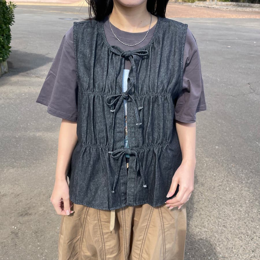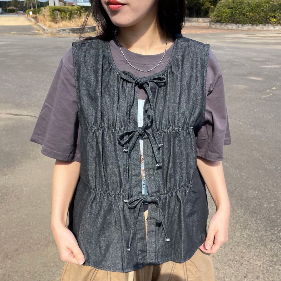 デニムリボンベスト