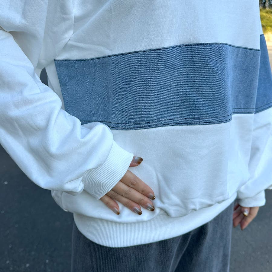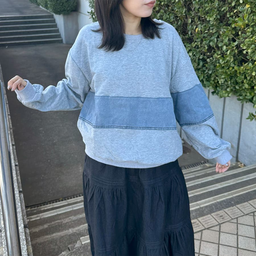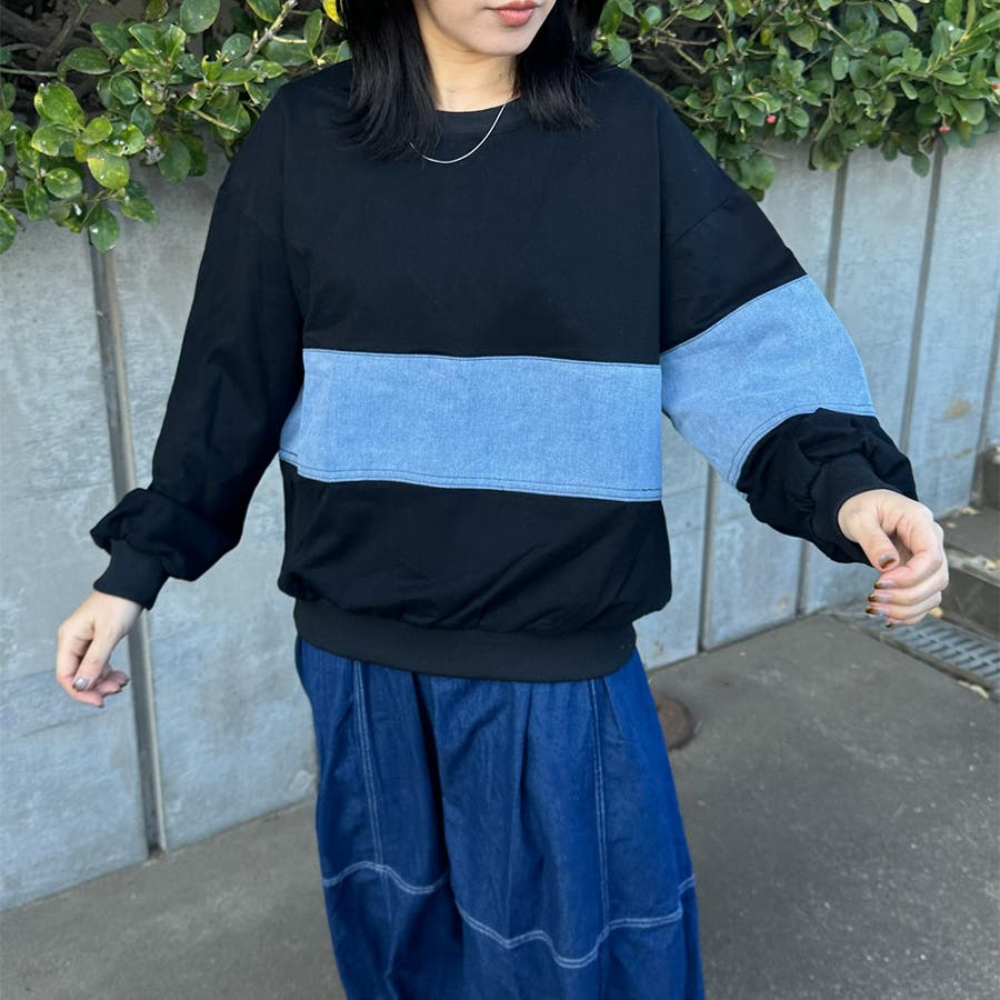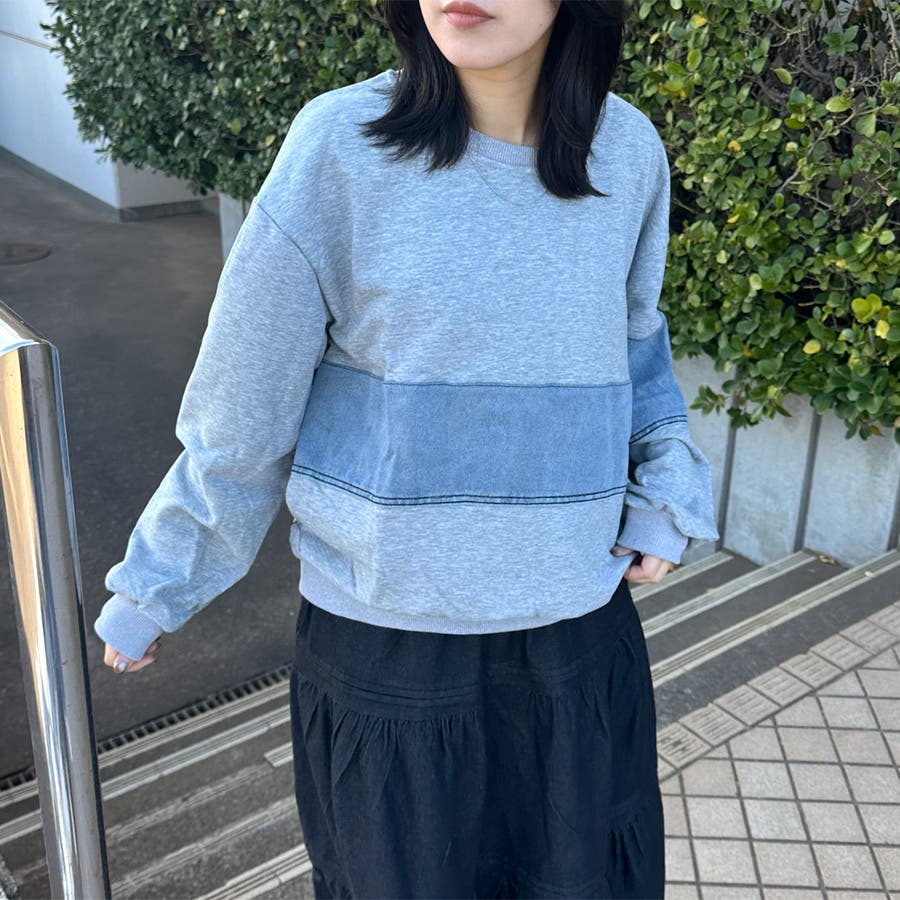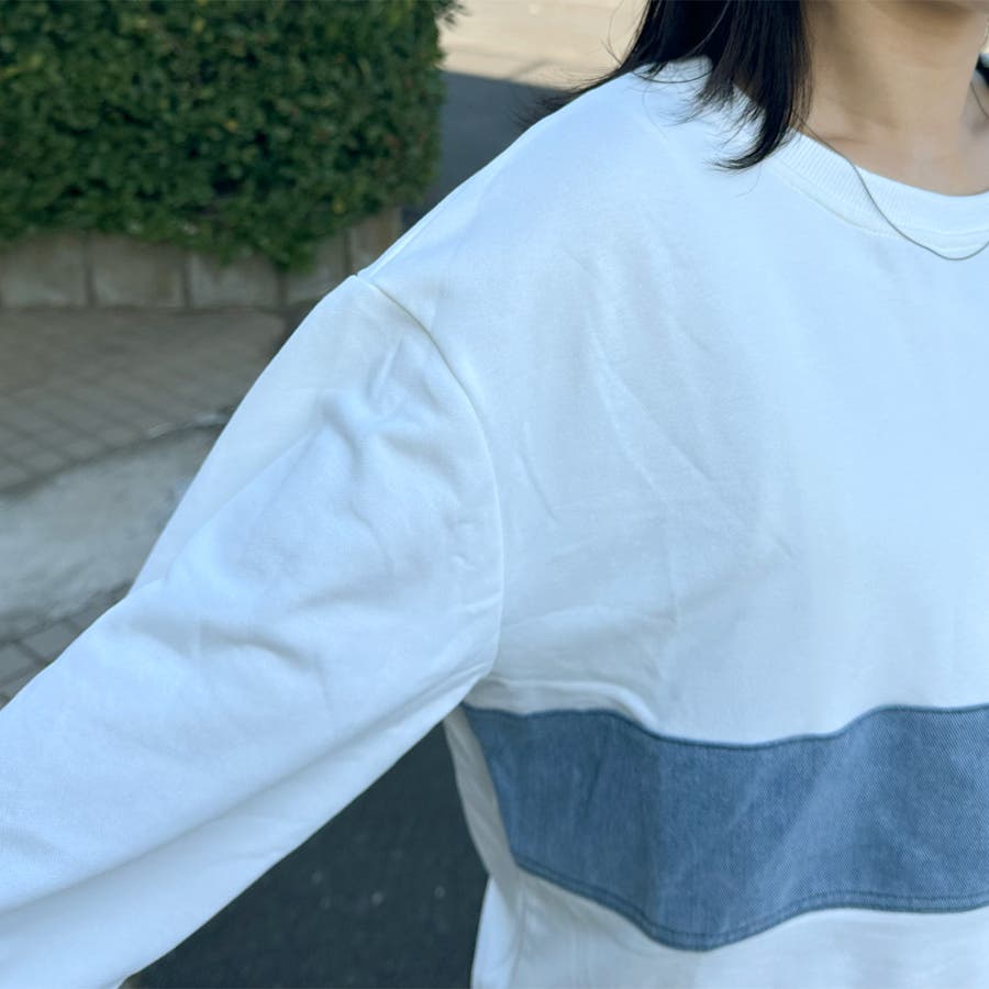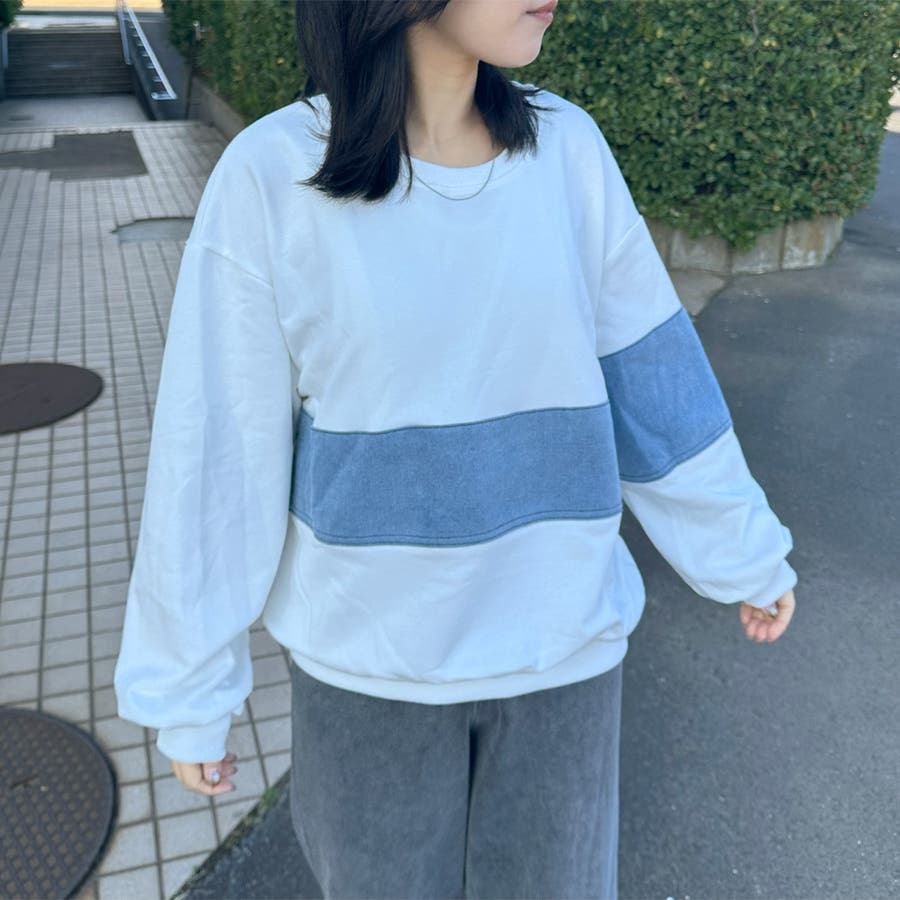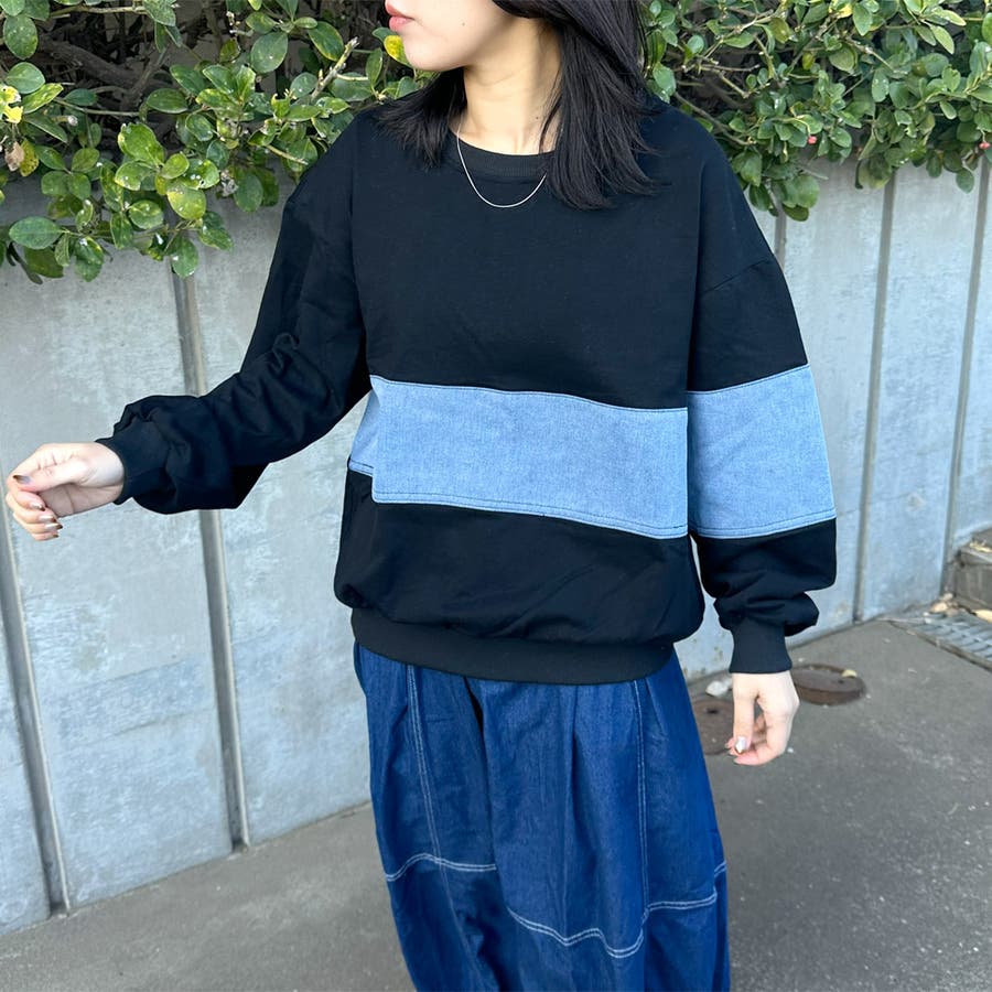 レディース/ファッション/女性/大人/おしゃれ/合わせやすい/韓国/韓国ファッション/10代/20代/30代/40代/50代/春/夏/秋/冬/SS/AW/春夏/秋冬/オールシーズン/春服/夏服/冬服/秋服/春コーデ/夏コーデ/秋コーデ/冬コーデ/新作/新着/新規/人気/定番/流行/おすすめ/トレンド/カジュアル/大人カジュアル/ナチュラル/大人ナチュラル/ナチュラルカジュアル/トレンドカジュアル/ミセス/きれいめ/モード/フェミニン/セクシー/スポーティー/トラッド/ストリート/メンズライク/可愛い/かわいい/着回し/ラフ/コーデ/レイヤード/スッキリ/クローゼット/ラフ/大きめ/大きいサイズ/ゆったり/2025新作/2026新作/体型カバー/長め/ゆったり/リラックス/着やすい/ママコーデ/高身長/低身長/楽ちん/コスパ/高見え/着映え/柔らか/上品/抜け感/着回し力/活躍/きれい/綺麗/華奢見せ/大人可愛い/ゆるシンプル/快適/きれい見え/のびのび/伸縮性/ストレッチ/優秀/通勤/通学/合わせやすい/ふっくら/肌触り/プチプラ/普段着/トップス 新作/トップス 新規/トップス/新作商品/デニム/春 デニム/秋 デニム/冬 デニム/秋冬 デニム/切替プルオーバー/春 トップス/秋 トップス/冬 トップス/秋冬 トップス/秋 プルオーバー/冬 プルオーバー/春 プルオーバー/長袖/ワイド/トレーナー/異素材/異素材切替/デザインプルオーバー/クルーネック/デニム切替/デニム切替プルオーバー/配色/スウェット/オフホワイト/ホワイト/白/シロ/グレー/灰色/ブラック/クロ/黒/くろ