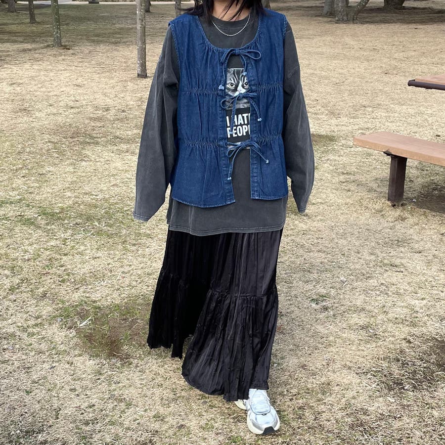 甘めスカートとの着用もおすすめ。