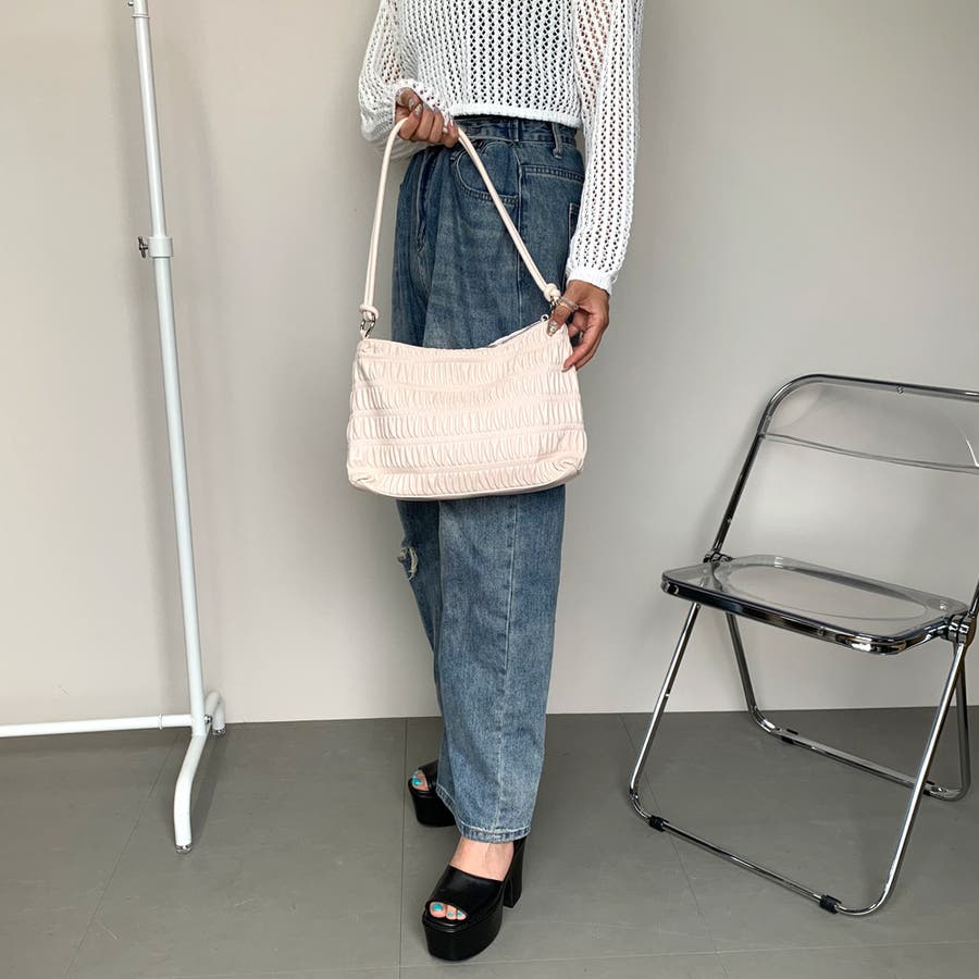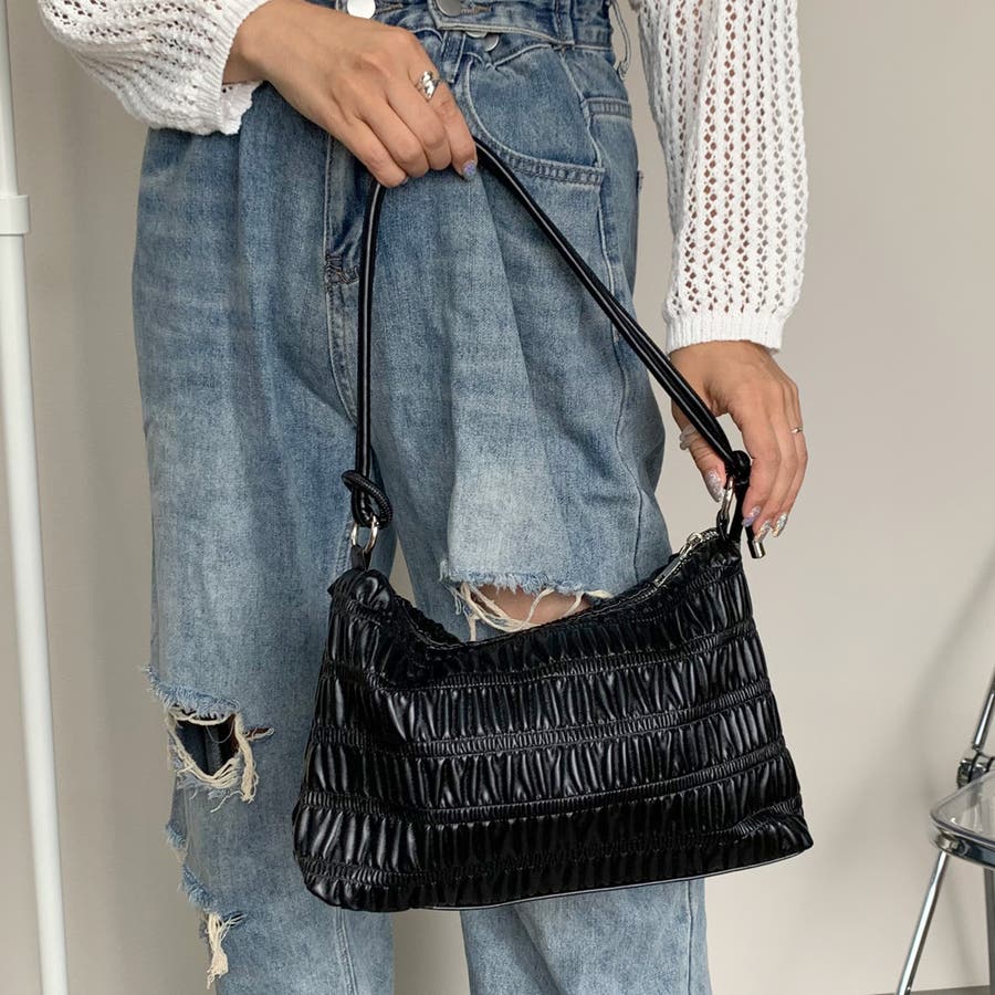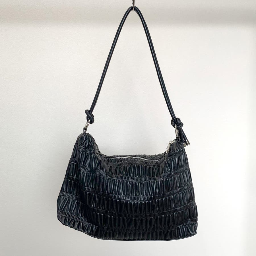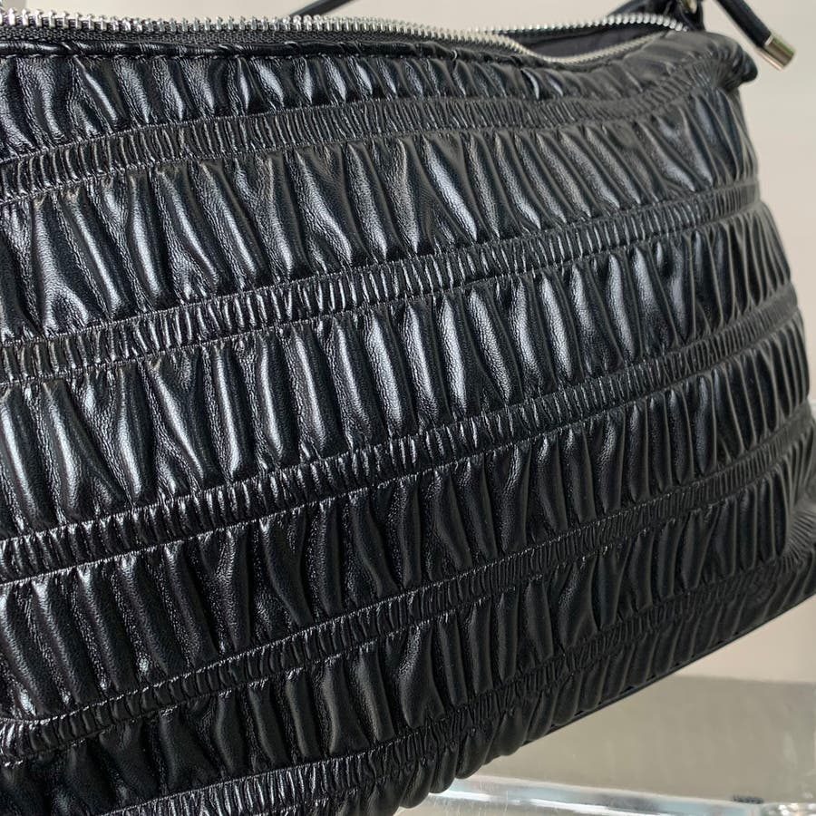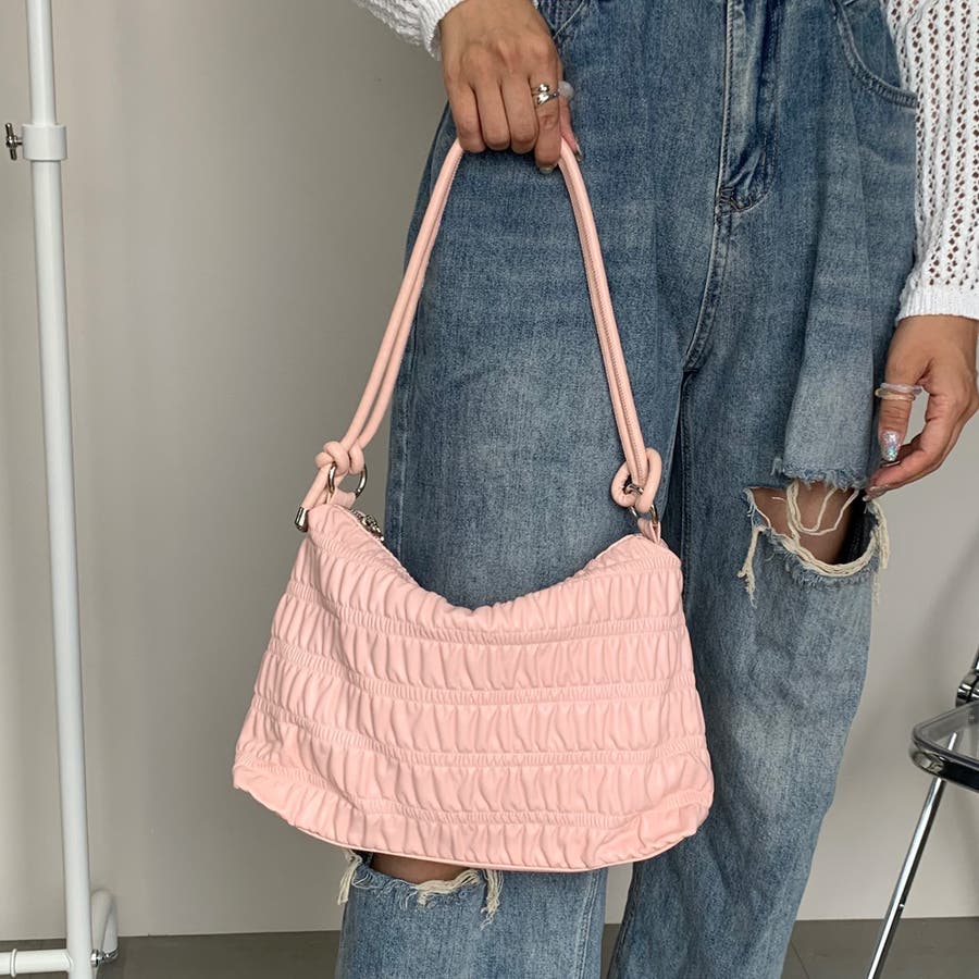 ギャザーデザインが特徴的なハンドバッグ。