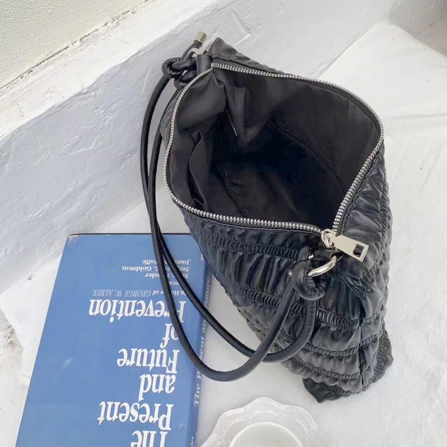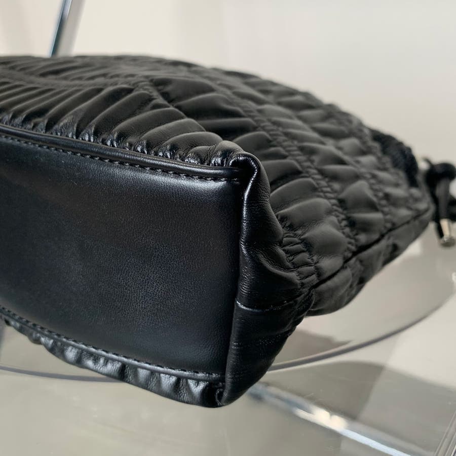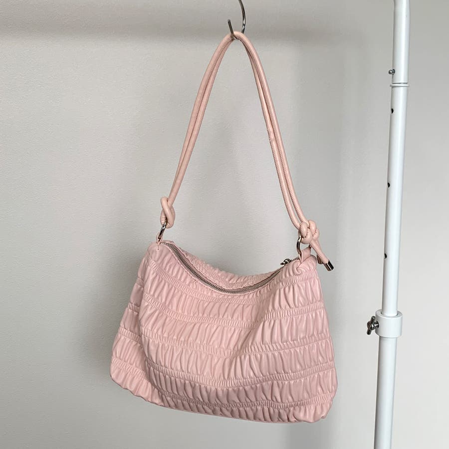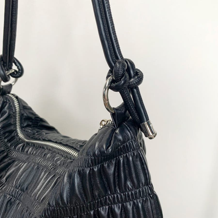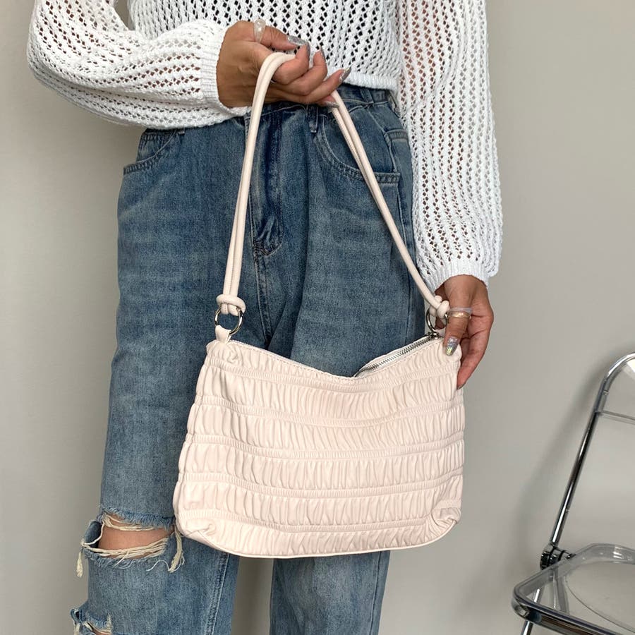 ギャザーデザインが特徴的なハンドバッグ。