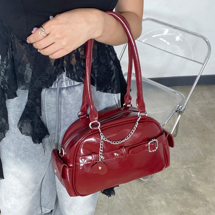 チェーンハートチャーム付きミニボストンバッグ
