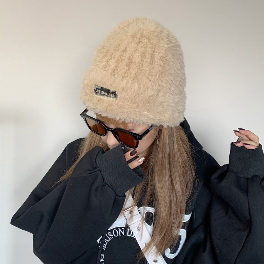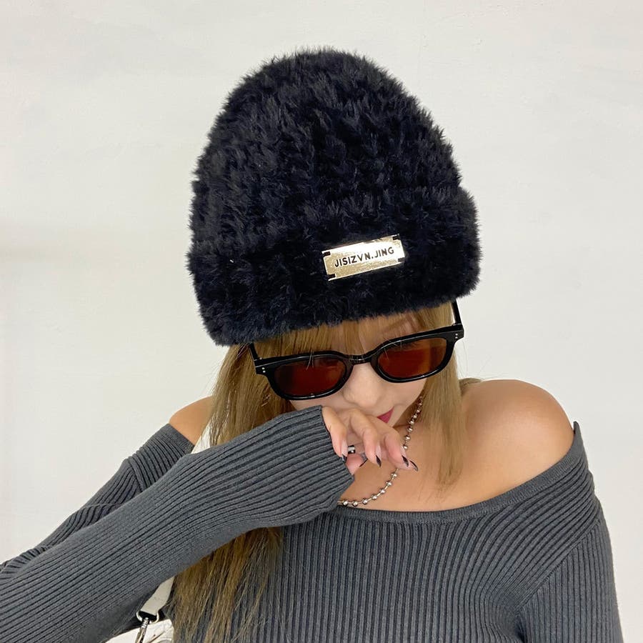 プレートシャギーニット帽