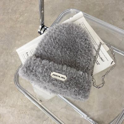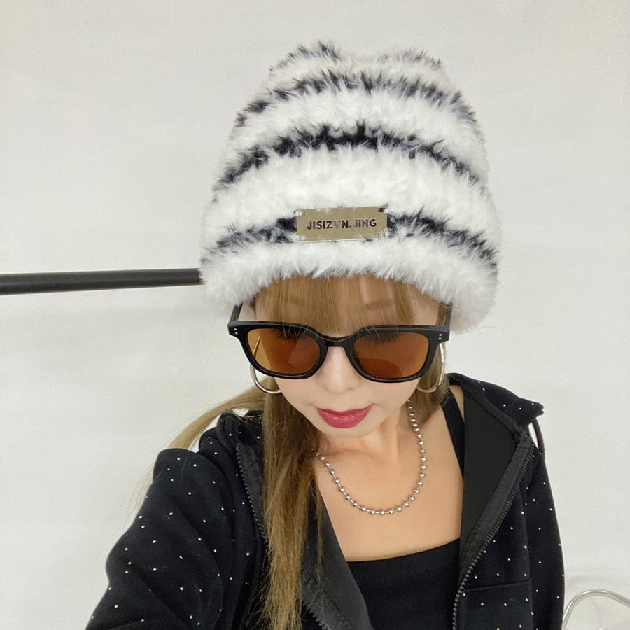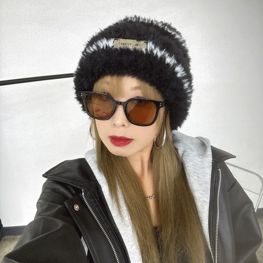 季節感漂うシャギーニット帽。