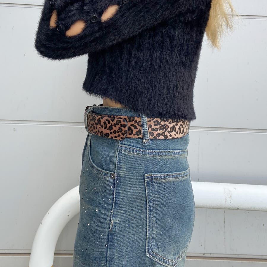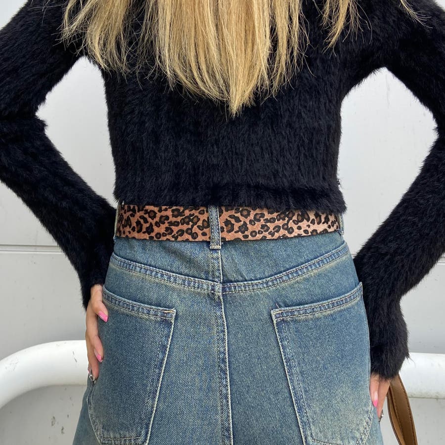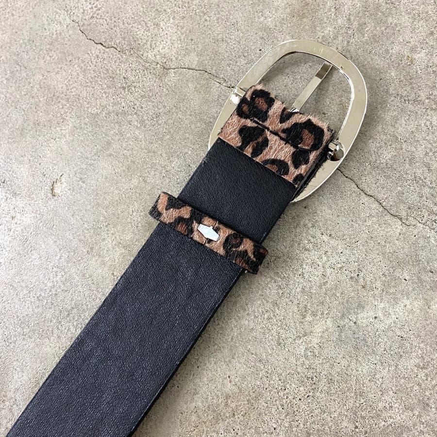 ハラコ調ヒョウ柄ベルト。