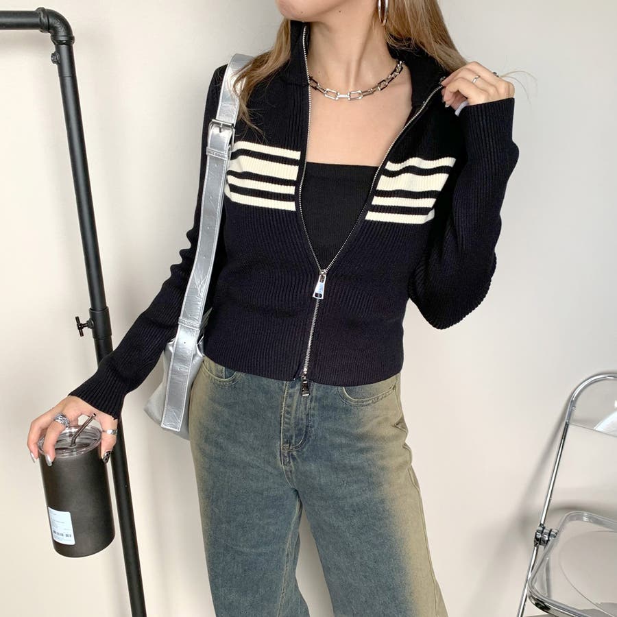 レディース/ファッション/おしゃれ/合わせやすい/大人/女性/韓国/韓国ファッション/10代/20代/30代/40代/50代/春/夏/秋/冬/SS/AW/人気/定番/新作/新着/新規/流行/トレンド/モード/フェミニン/アメカジ/ストリート/クール/キレイめ/ナチュラル/カジュアル/大人カジュアル/スポーティー/スポーティ/スケーター/ストリート/シンプル/ベーシック/デザイン/縮性/ニット/セーター/リブニット/トップス/プルオーバー/ニットトップス/レイヤード/重ね着/ショート丈/クロップド丈/ショートトップス/ニット 韓国/韓国 ニット/ジップトップス/WZIP/ダブルZIP/ZIP/ジップ/ハイネック/スタンドネック/羽織/羽織り/カーデ/カーディガン/ショートカーディガン/ショートカーデ/着回し/おすすめ/デイリー/コーデ/ギャル/Y2K/高身長/低身長/骨格ストレート/骨格ナチュラル/骨格ウェーブ/プチプラ/可愛い/かわいい/かっこいい/無地/ボーダー/マリン/オフホワイト/ホワイト/白/シロ/ブラック/黒/クロ/グレー/灰色/ブラウン