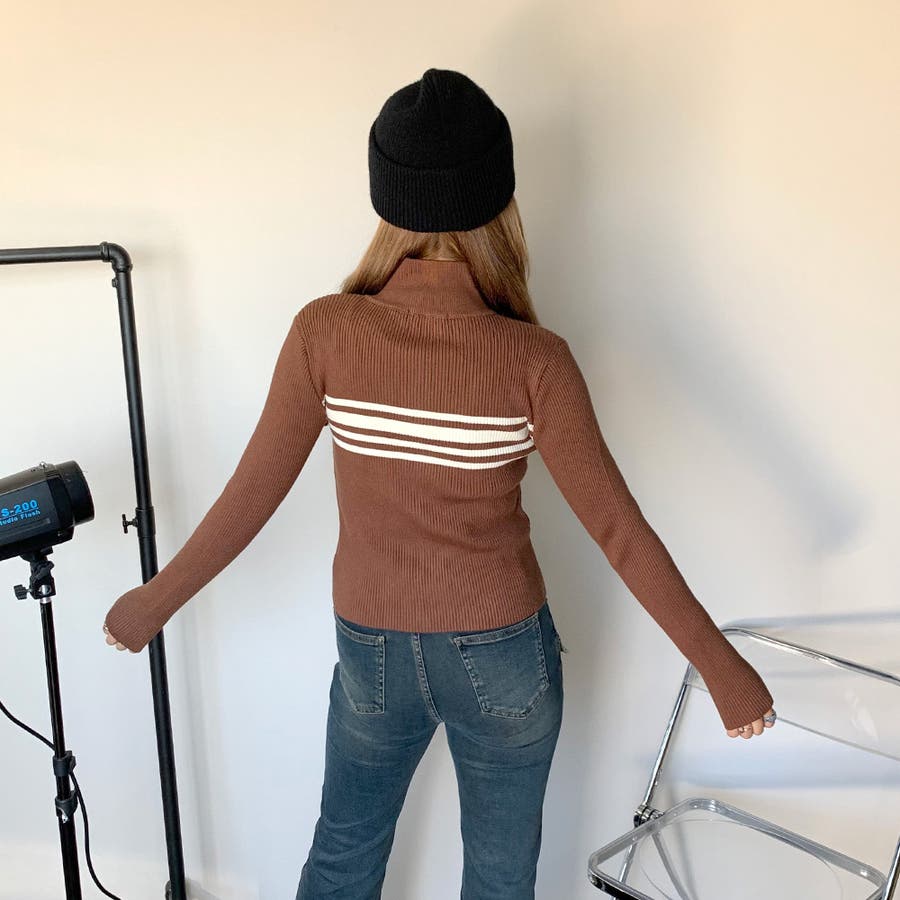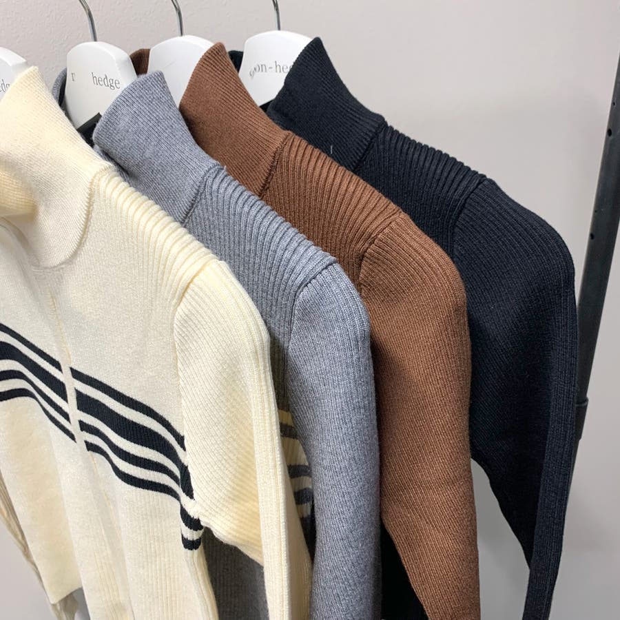 ハイネックニットトップス。