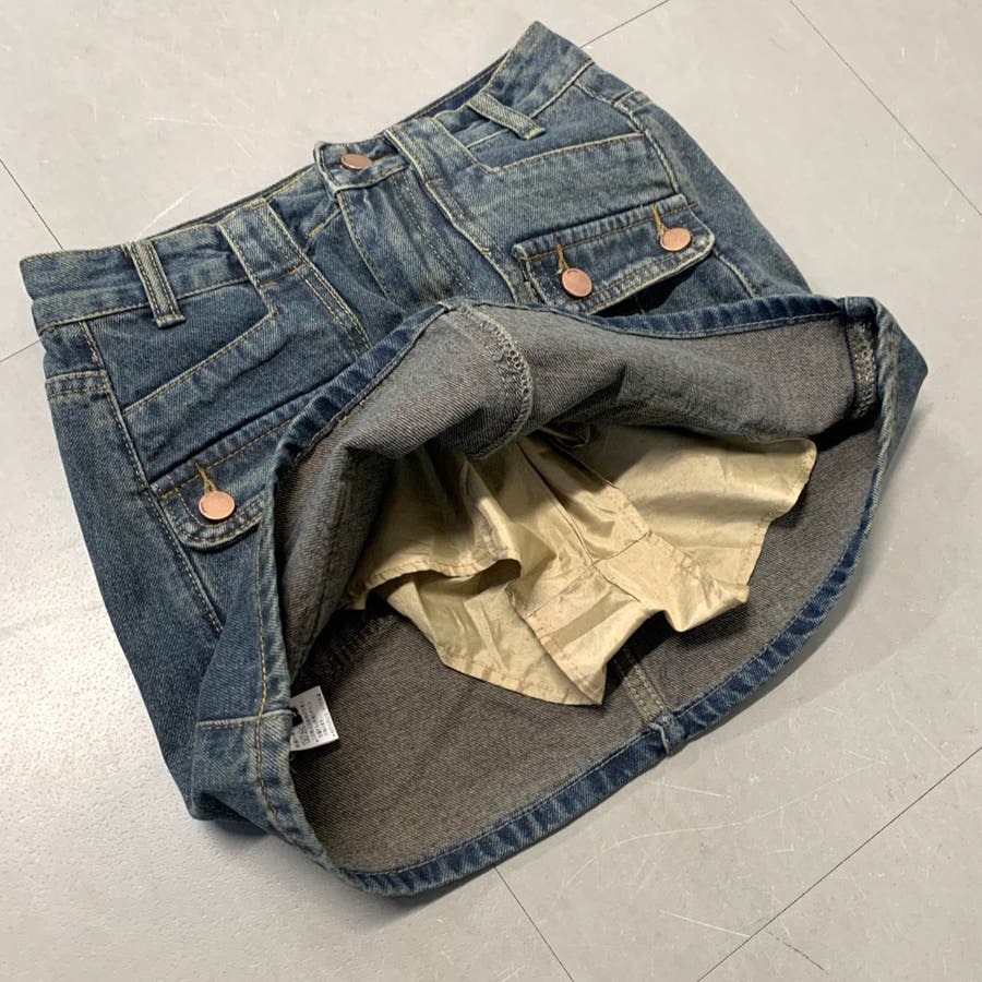 レディース/ファション/女性/大人/おしゃれ/合わせやすい/韓国/韓国ファッション/10代/20代/30代/40代/50代/春/夏/SS/AW/秋/冬/春夏秋冬/新作/新着/新規/人気/定番/おすすめ/トレンド/流行/カジュアル/大人カジュアル/デイリー/高身長/低身長/骨格ストレート/骨格ナチュラル/骨格ウェーブ/モード/ギャル/可愛い/Y2K/かわいい/かっこいい/レトロ/ストリート/スポーティー/スポーティ/スケーター/ミリタリー/クール/スタイリッシュ/スマート/キレイめ/フェミニン/ナチュラル/ボトムス/お出掛け/おでかけ/デザイン/無地/着回し/コーデ/デニム/パンツ/デニムパンツ/デニムスカート/デニムショート/デニムボトム/レディース ボトム/ショーパン/ショートパンツ/楽ちん/短パン/ショート丈/ミニ丈/ヘルシー/ぺチパン/ペチコート/ハイウエスト/カーゴスカート/ミリタリースカート/ミニスカート/ミニスカ/ミニ丈/フェイクスカート/ショートパンツ/ショートボトム/スカート/ポケット/フラップポケット/フラップ/ブラックデニム/ヴィンテージ/フェード/フェード加工/ユーズド感/ケミカル/ケミカルデニム/ウォッシュ加工/インディゴ/アンティークゴールド/黒/ブラック/クロ/ブルー/青