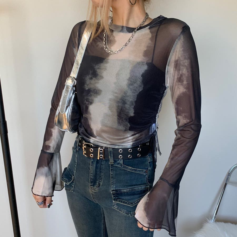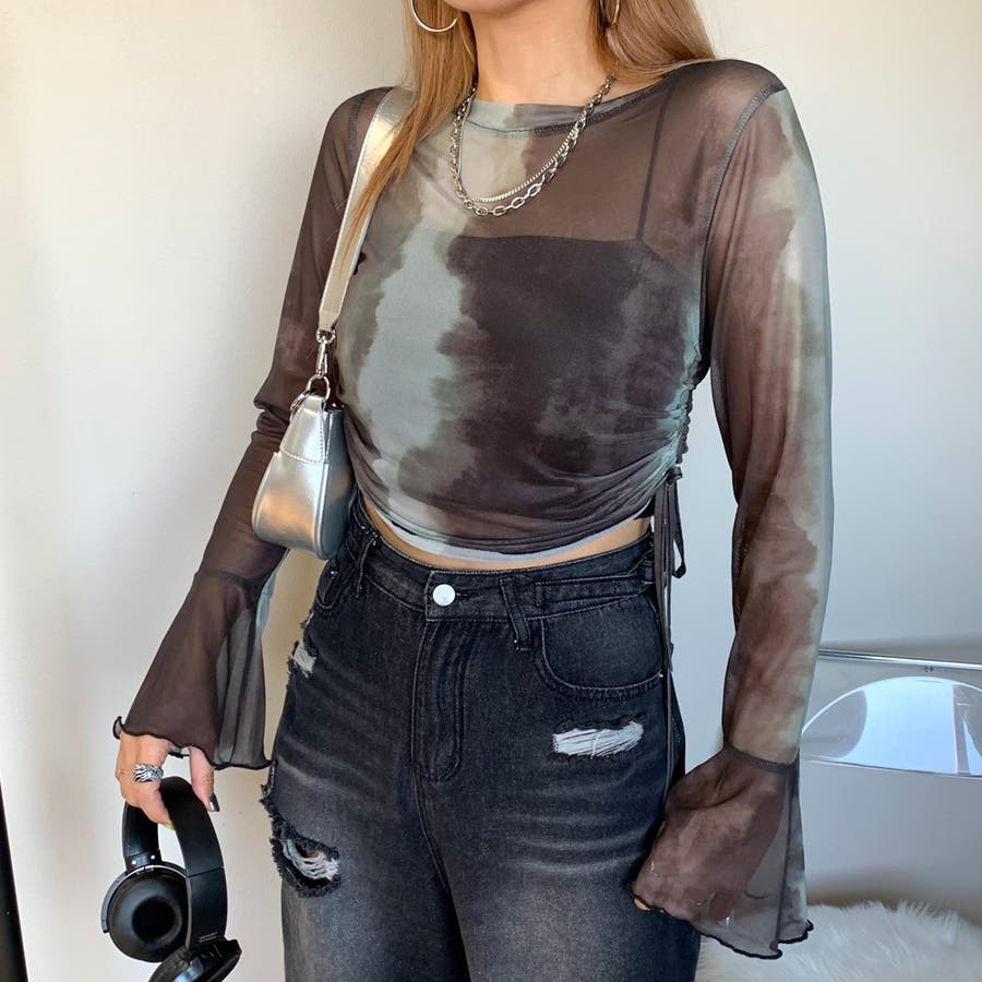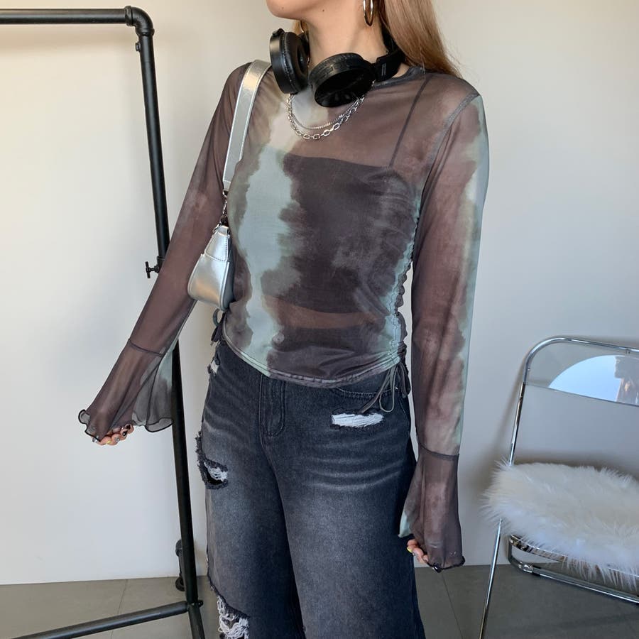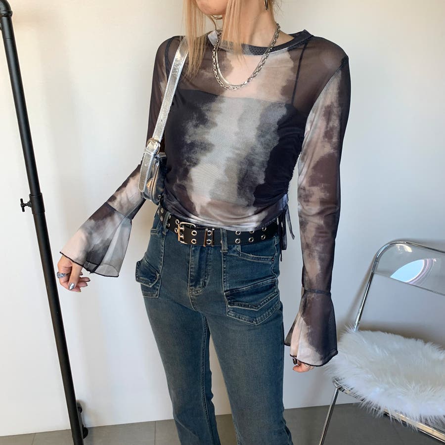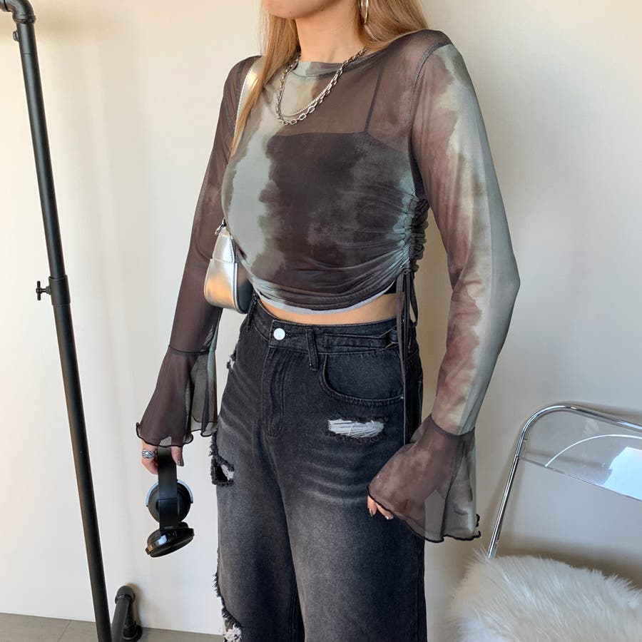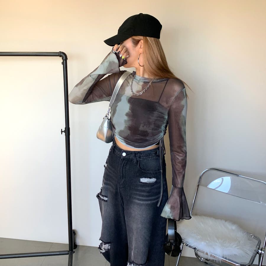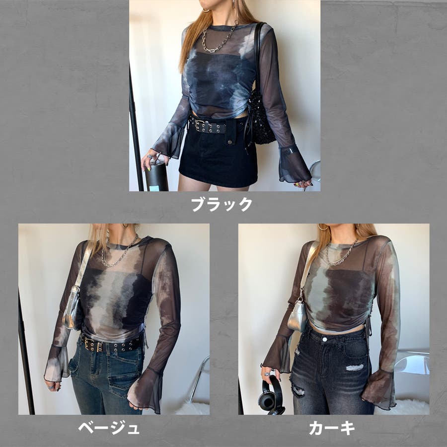 2024/2024新作/2024SS/ootd/code/outfit/coordinate/fashion/tops/レディース/ファッション/おしゃれ/合わせやすい/大人/女性/韓国/韓国ファッション/10代/20代/30代/40代/50代/春/夏/秋/SS/春服/夏服/秋服/春 トップス/新規/新着/新作/定番/人気/流行/トレンド/カジュアル/大人カジュアル/モード/フェミニン/ガーリー/ナチュラル/セクシー/マニッシュ/レトロ/キレイめ/ストリート/スポーティー/スポーティ/スケーター/スポーツミックス/スポーツMIX/ミリタリー/クール/ジェンダーレス/ラグジュアリー/可愛い/かわいい/かっこいい/ギャル/Y2K/Y3K/近未来感/デザイントップス/トップス/プルオーバー/カットソー/ロンT/インナー/インナートップス/コンパクト/ミニマル/ミニマム/コンパクト/ショート/ショート丈/クロップド/クロップド丈/長袖/着回し/重ね着/レイヤード/ショートトップス/ショートT/シンプル/ベーシック/ノームコア/トラッド/デザイン/コーデ/フレア/フレアスリーブ/袖フレア/ベルスリーブ/肌見せ/ヘルシー/透け/透け感/シースルー/シアー/ネット/ニュアンス/ニュアンス柄/ニュアンスカラー/柄 シアー/シアー 柄/水彩/水彩柄/ぼかし柄/マーブル柄/グラデーション/ペイント柄/総柄/チュール/メロー/メロウ/ギャザー/ハイネック/タートルネック/ハイウエスト/骨格ストレート/骨スト/骨格ナチュラル/骨ナチュ/骨格ウェーブ/骨ウェブ/イエベ/ブルべ/高身長/低身長/ワンホン/オルチャン/グラデーション/グラデーション柄/タイダイ/ムラ染め/ムラ/ブラック/クロ/黒/ベージュ/カーキ