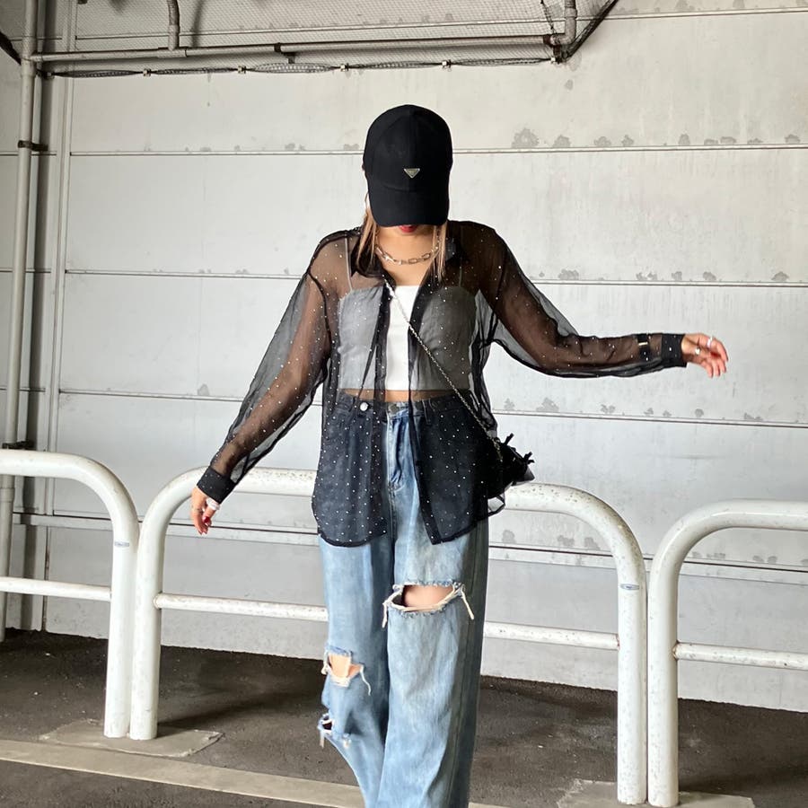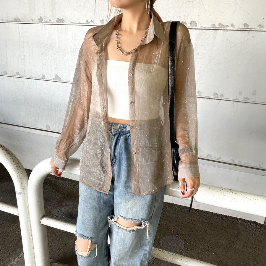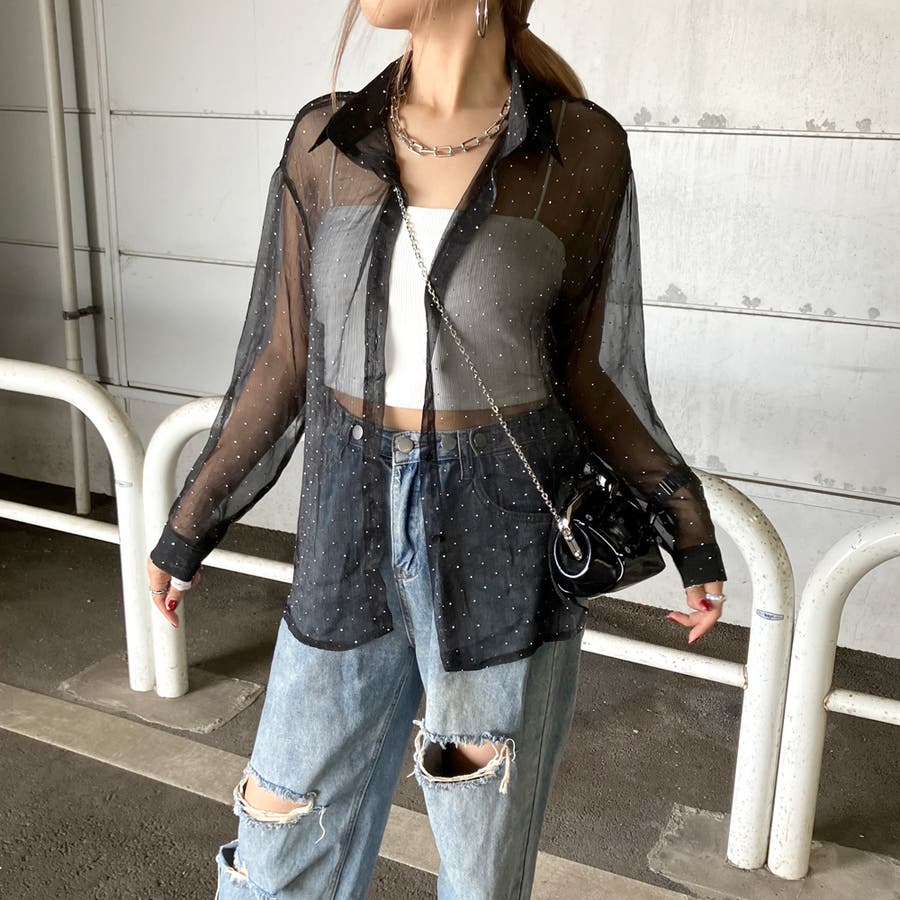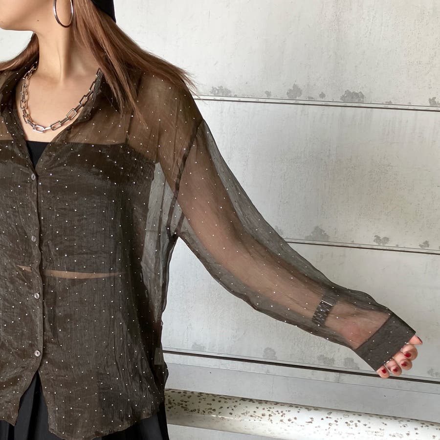 華やかなシアーシャツ。
