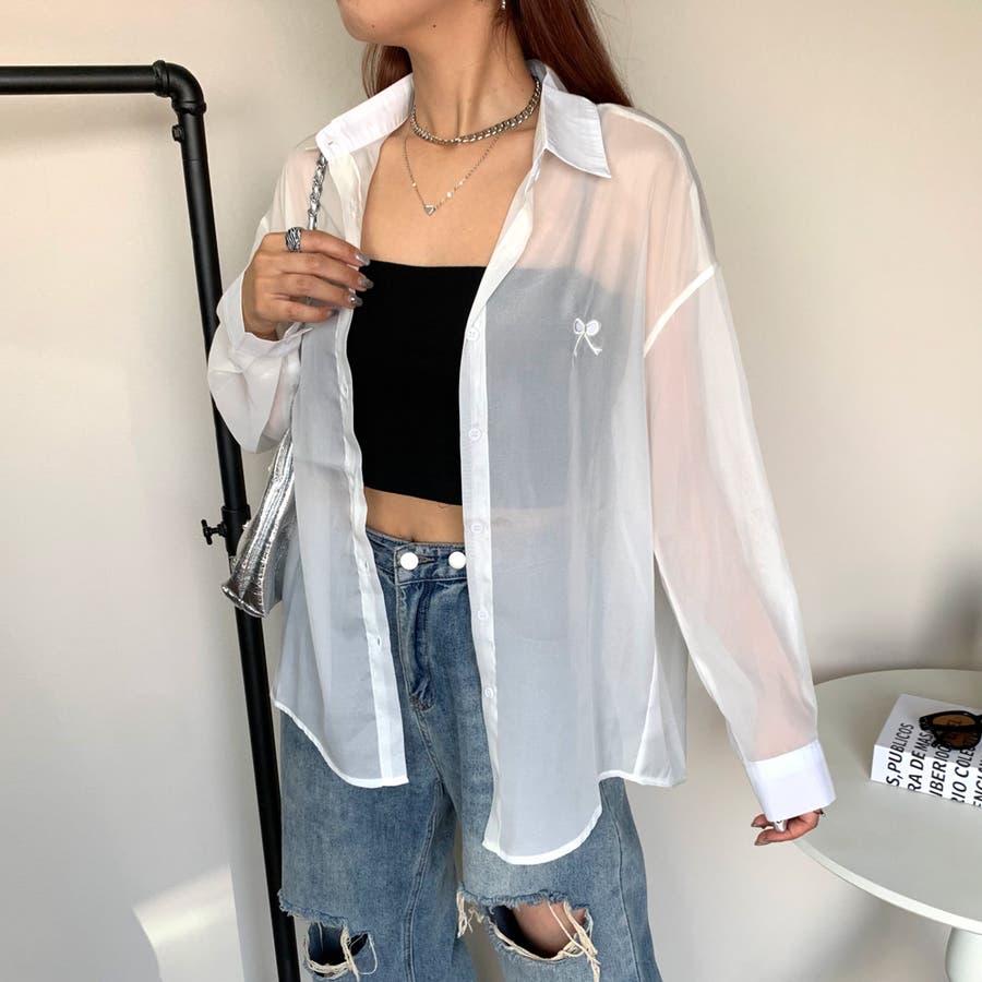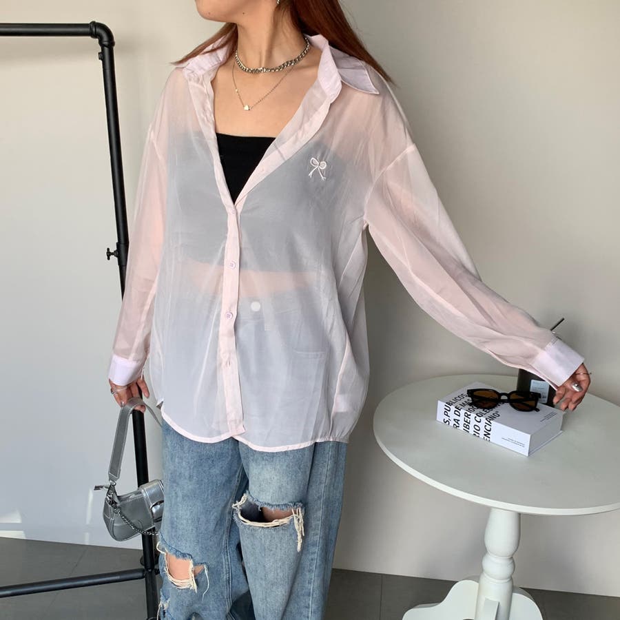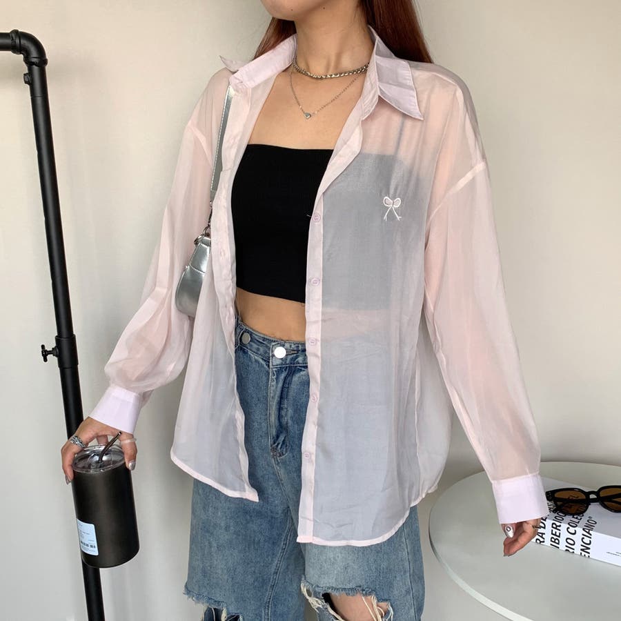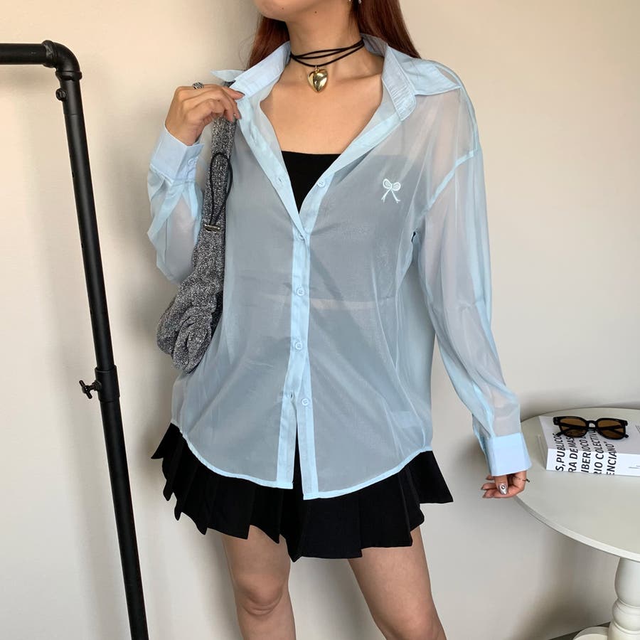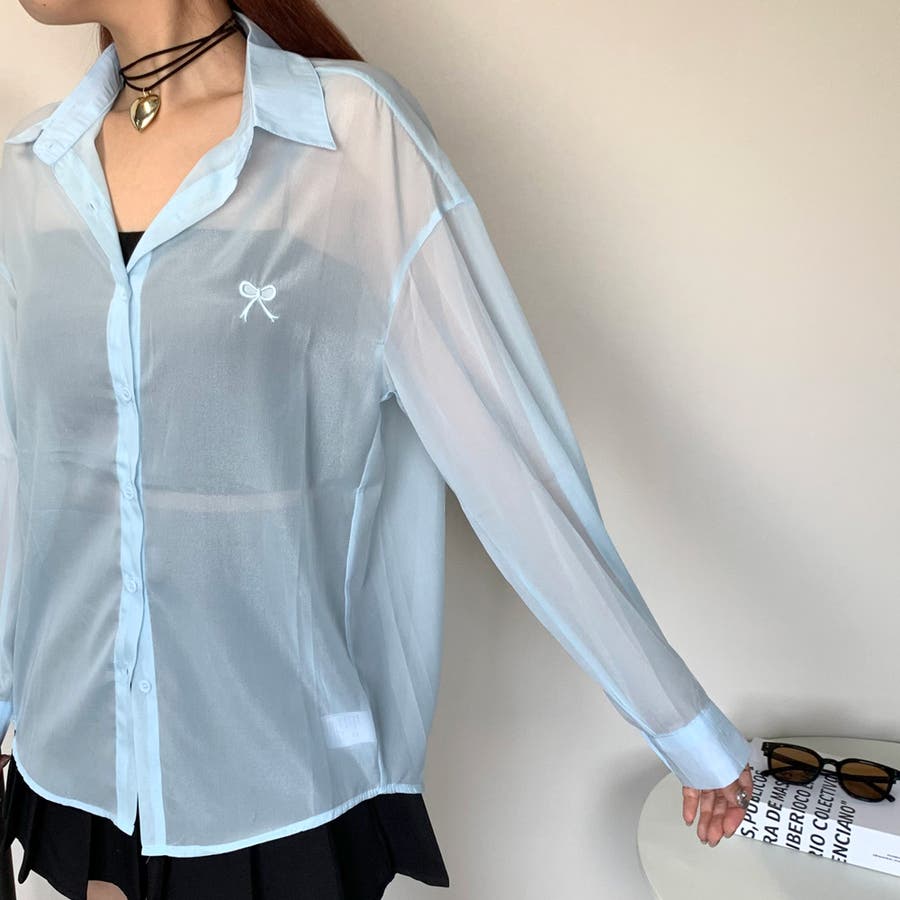 リボン刺繍シアーシャツ