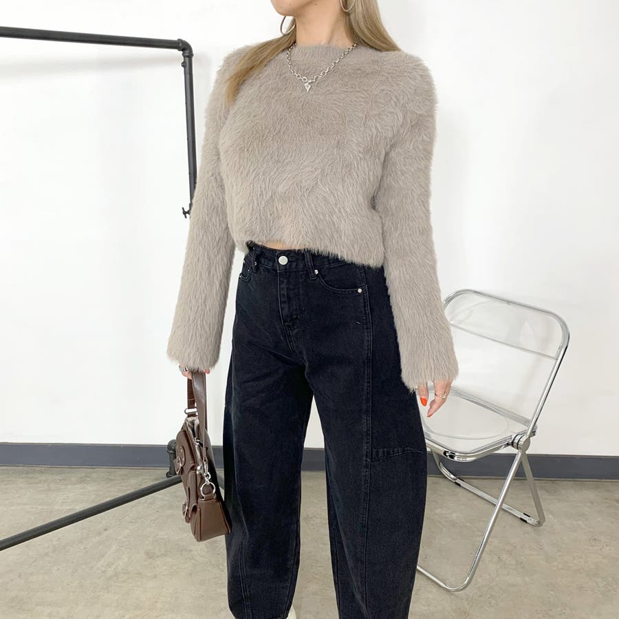 クロップド丈のトップスと