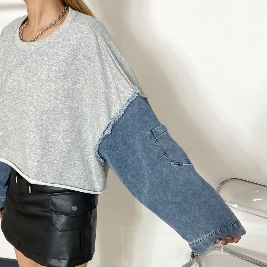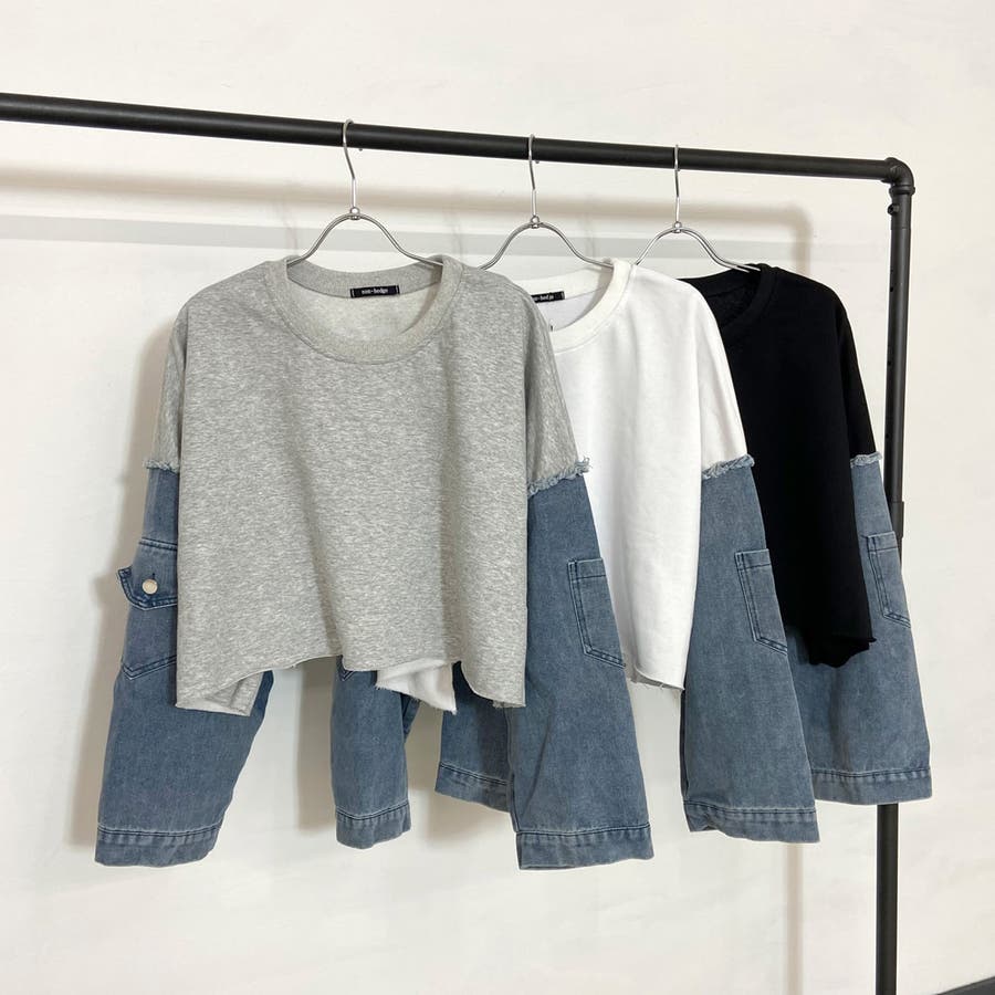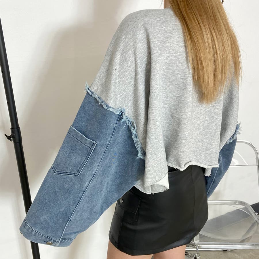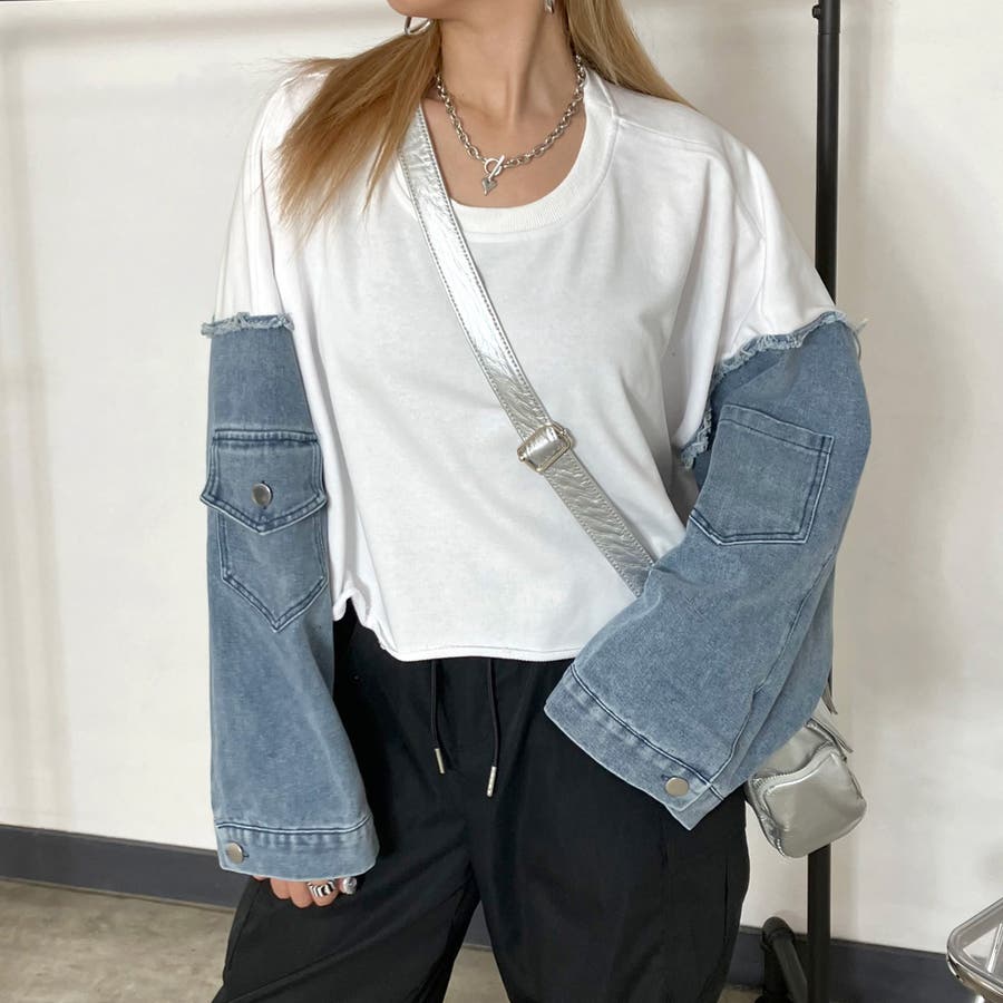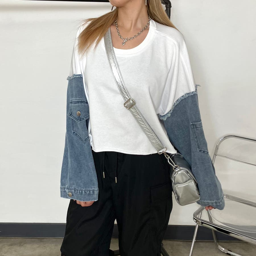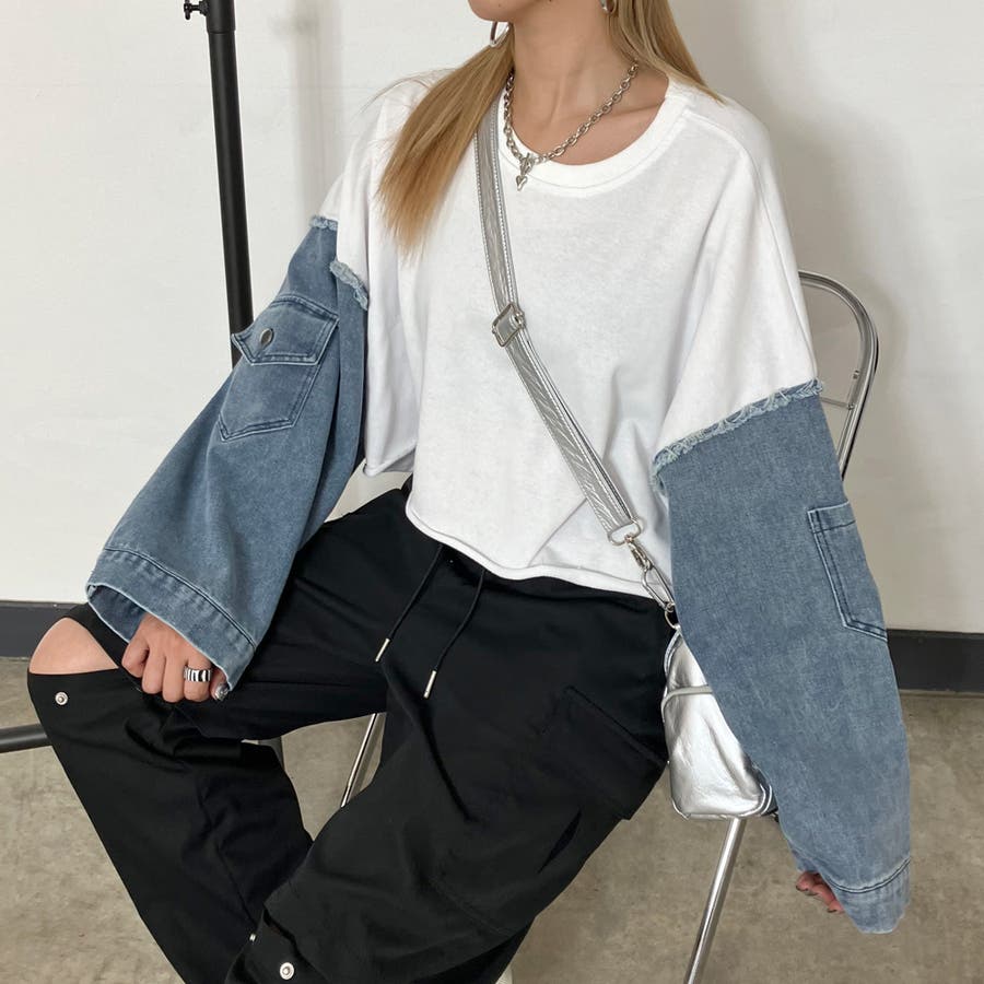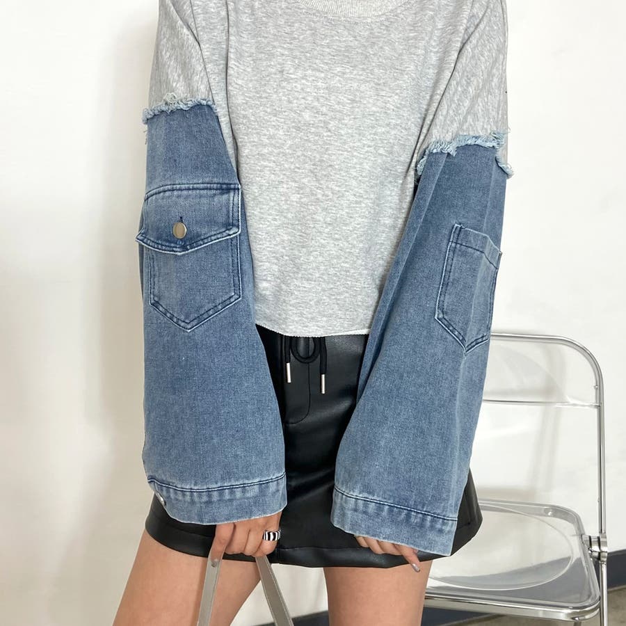 袖のデニム切り替えがトレンドライクな、